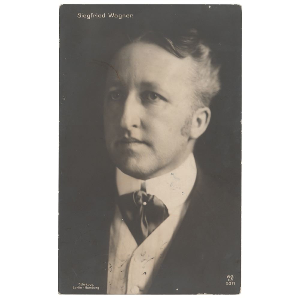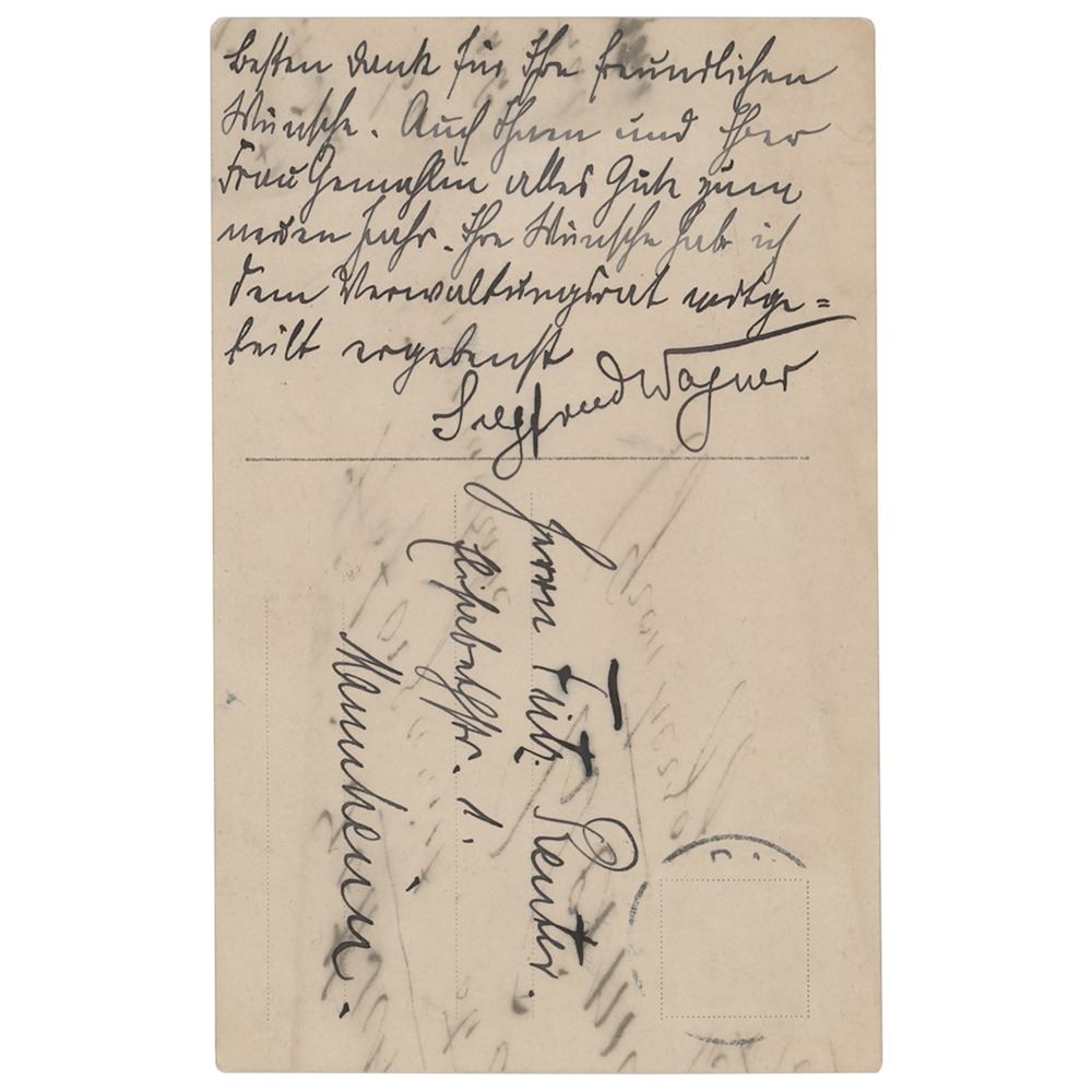 ALS in German, one page on the reverse of a 3.25 x 5.25 postcard photo, no date. Untranslated handwritten letter by Siegfried Wagner. In fine condition, with some mirrored ink transfer from a different letter.