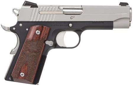 The 1911 C3 is a compact 45ACP pistol with a black alloy frame and a