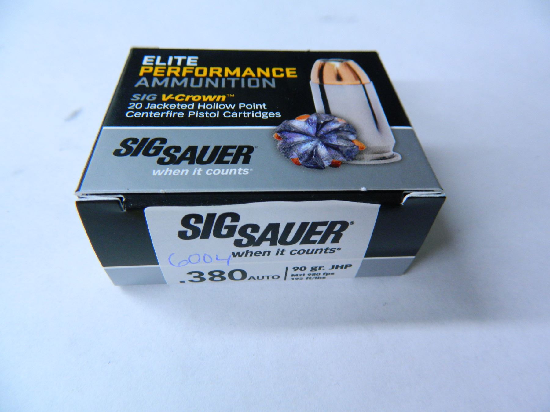 Sig Sauer Ammo, .380 ACP, 90 Grain, Elite V-Crown, Jacketed Hollow Point, Twenty (20) Pack