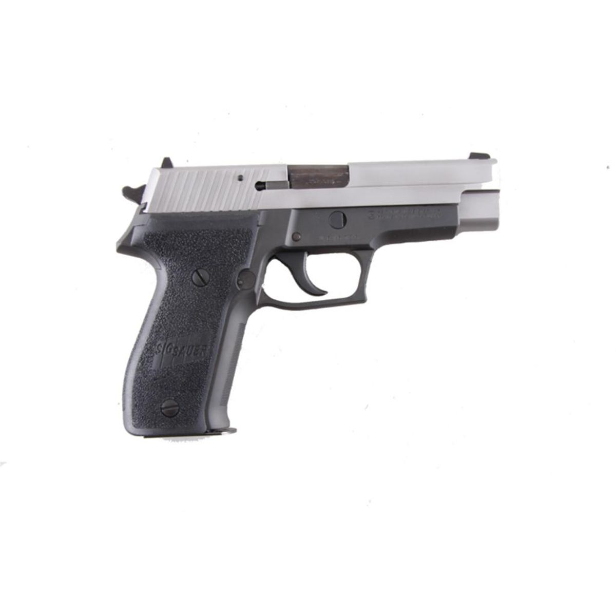 Sig Sauer Mdl P226 Cal .357 Sig SN:U616735 Single action/double action semi-auto 12 shot pistol with frame mounted decocker. Matte stainless steel slide and matte black alloy frame with black pebbled grips, 4.4" barrel with 2 dot fixed sights, good borSingle action/double action semi-auto 12 shot pistol with frame mounted decocker. Matte stainless steel slide and matte black alloy frame with black pebbled grips, 4.4" barrel with 2 dot fixed sights, good bore andaction. Included in red plastic carry case with instructions, extra .40S&W barrel, and gun lock. Condition: Excellent with little sign of use. 2 magazines.