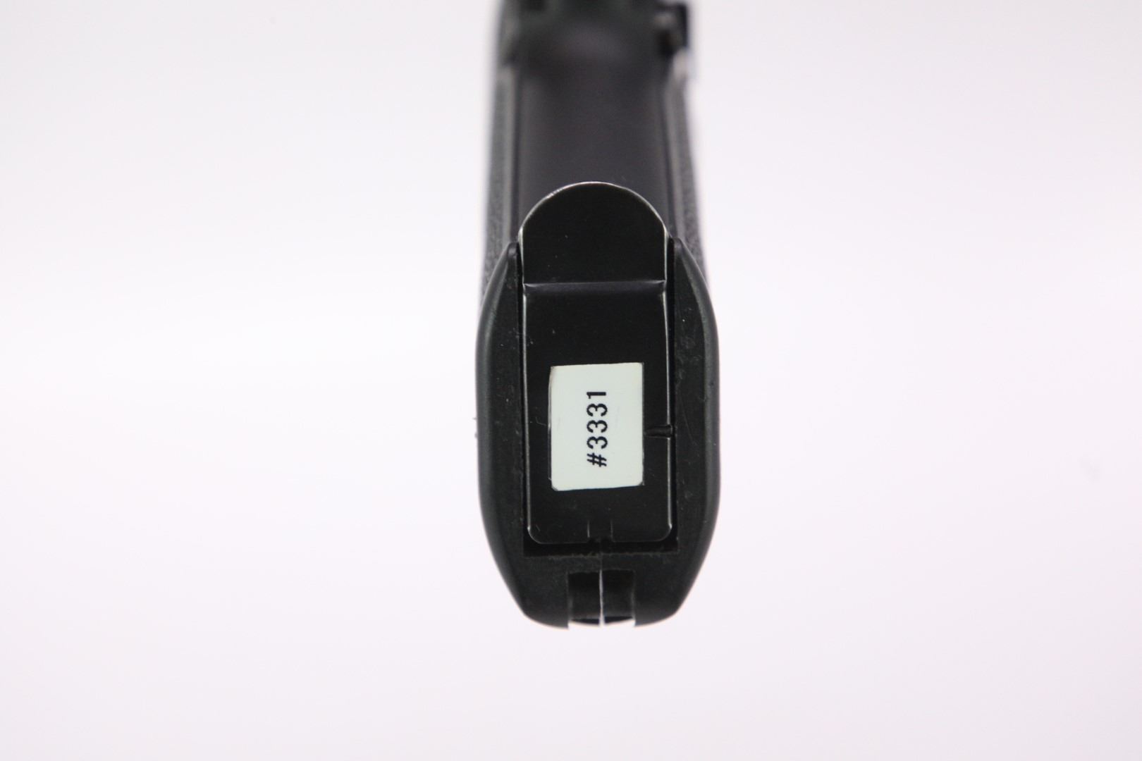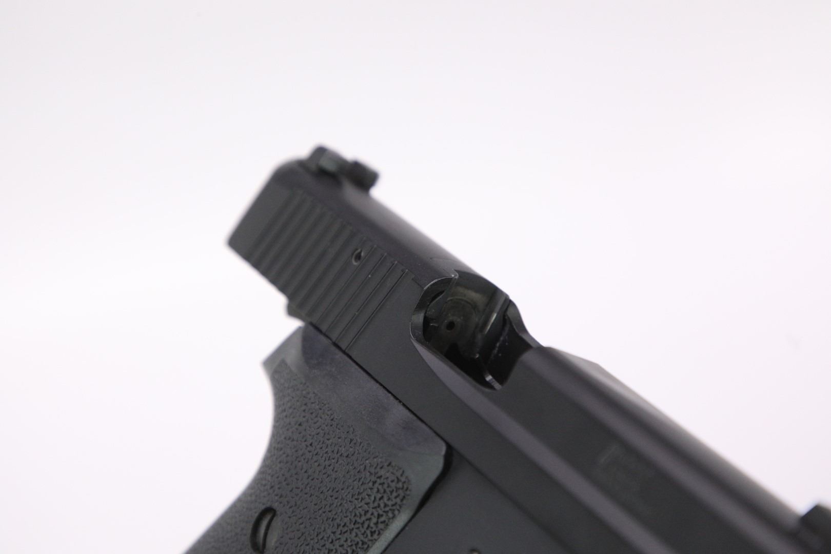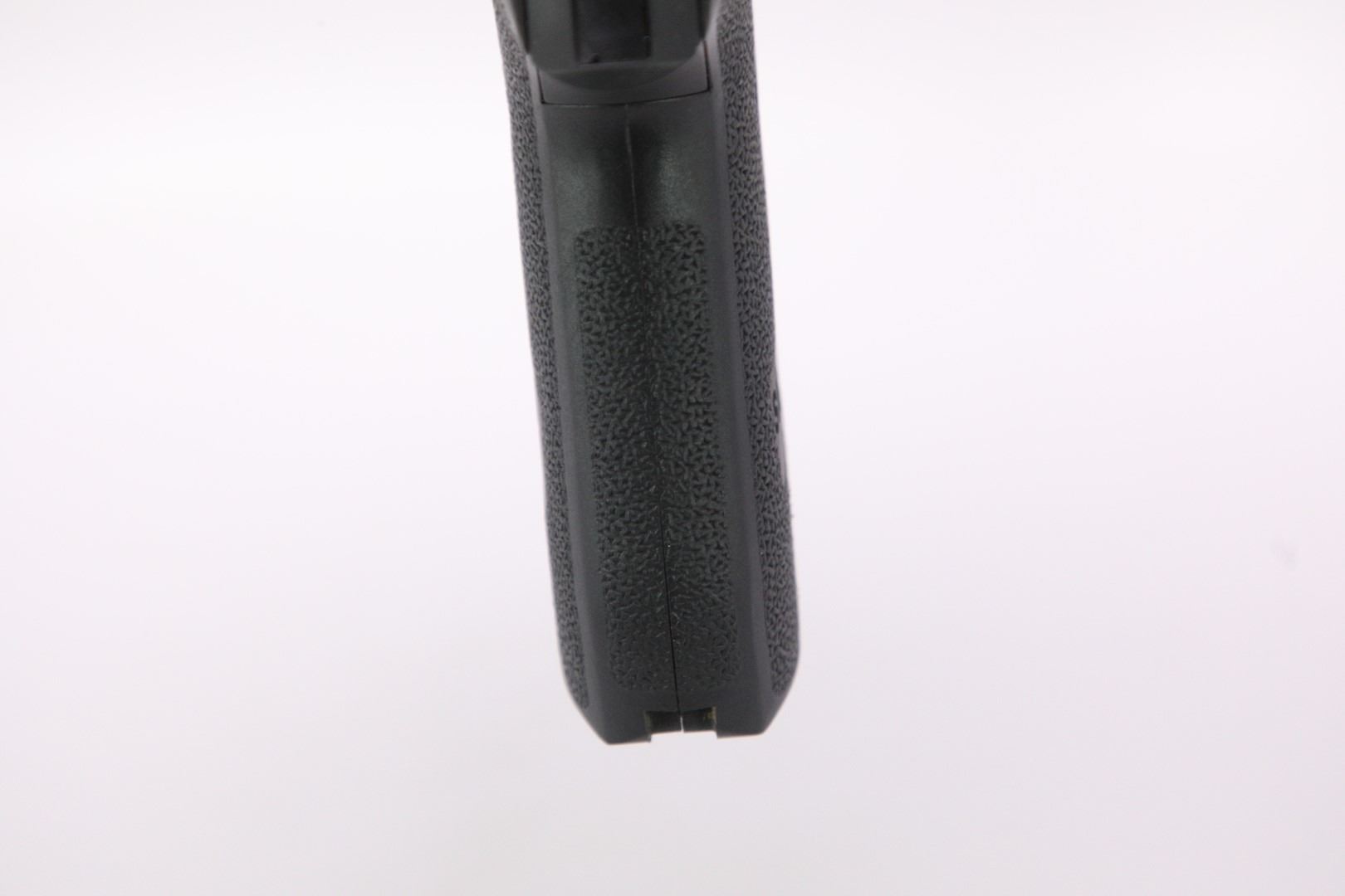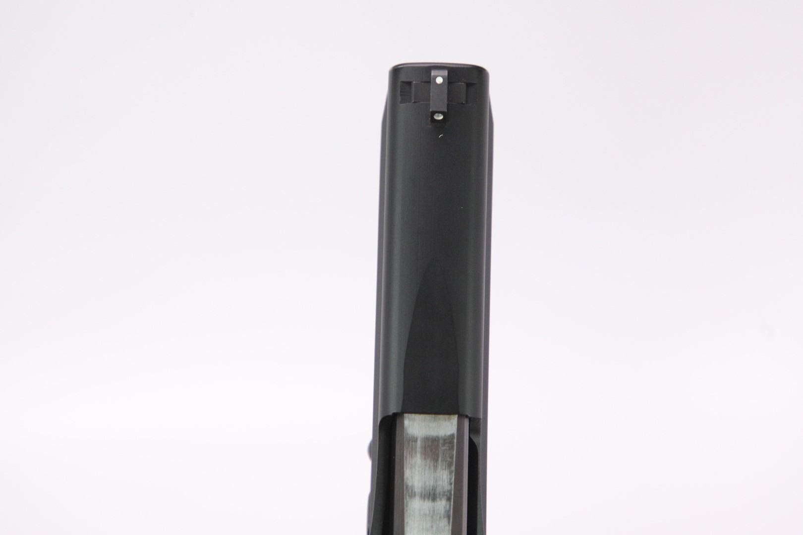 Sights / Optics: The front sight is a blade with a tritium insert dovetailed to the slide above the muzzle. The rear sight is a square notch with flanking tritium inserts dovetailed to the top rear of the slide. The tritium inserts are very dim and in need of replacement.