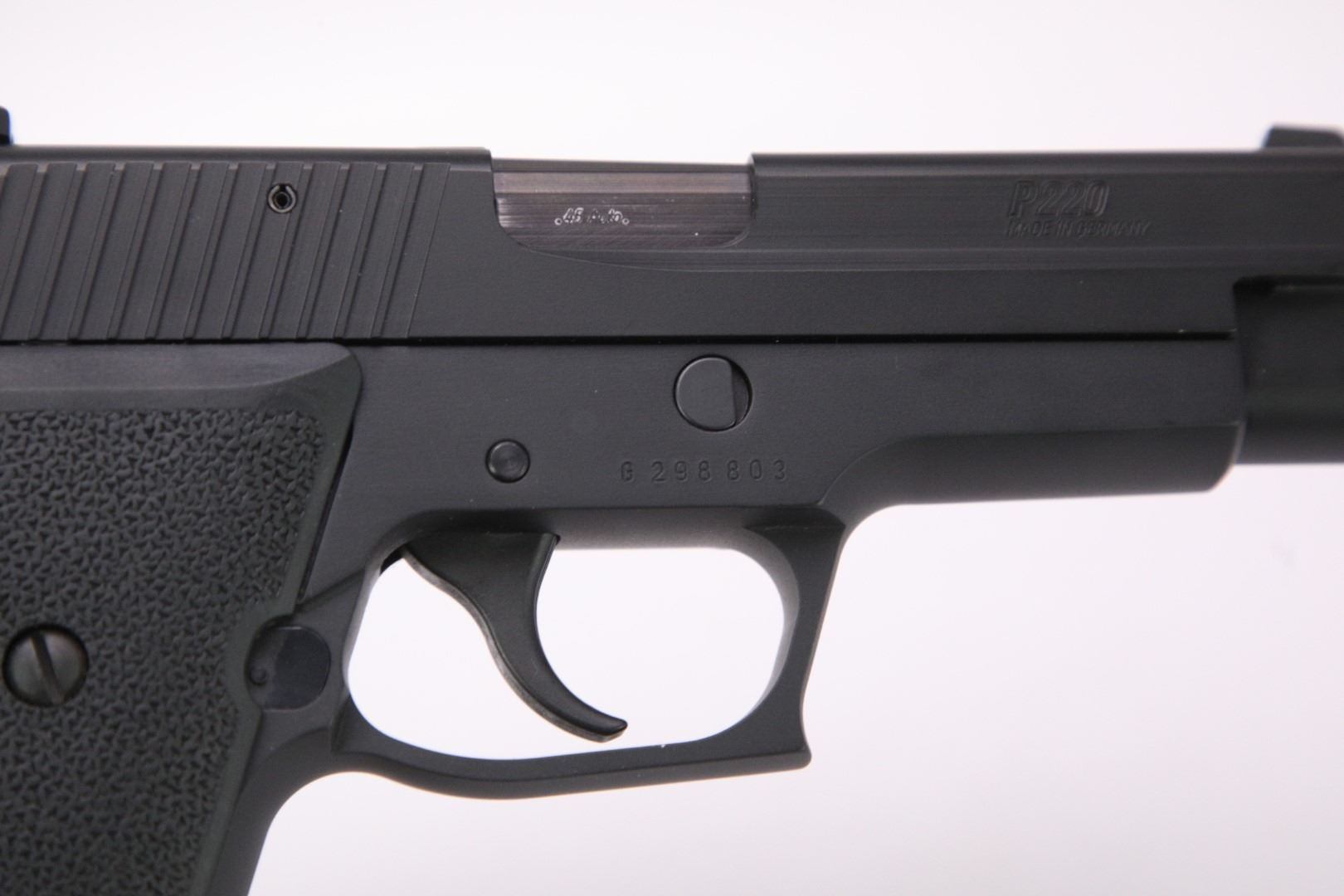 Our Assessment: The Sig Sauer P220 is a single stack .45 ACP full size combat pistol. It is similar to the 1911 in that it is a single-stack .45, semi-automatic but all similarities stop there. The P220 has an aluminum grip frame to reduce weight, decocker and DA/SA capability, and is one of the easiest pistols in the world to field-strip. The gun fits the hand well and has familiar controls found on other Sig models. Sig has multiple contracts with different countries from basic law enforcement to special forces because they make the best. This pistol is ergonomic, reliable, and a great option for anyone in the market for a semi-automatic .45. Please see our photos and good luck in your bidding!