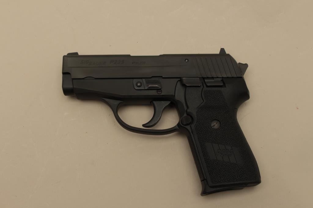 #S4-49868. The pistol is in very good overall condition with a 3 ½” barrel. The pistol retains nearly all of its matte blue finish with light storage marks noted. The checkered rubber SIG grips are in very good condition showing little use. The bore is very good, the action crisp and markings are sharp. The lot includes one Sig Sauer marked magazine. Est.: $350-$700. (Modern).