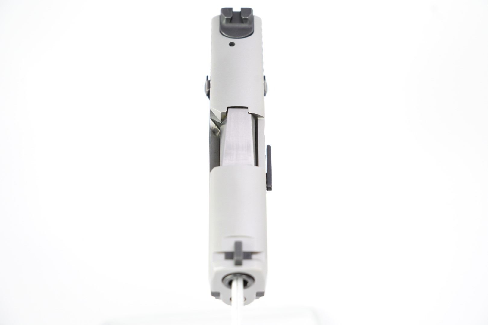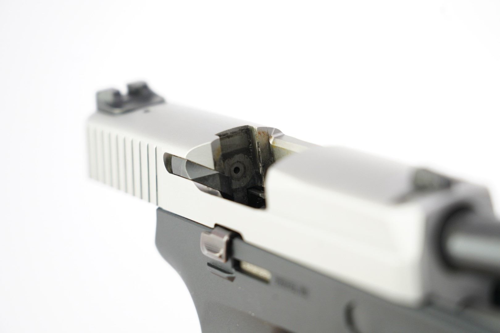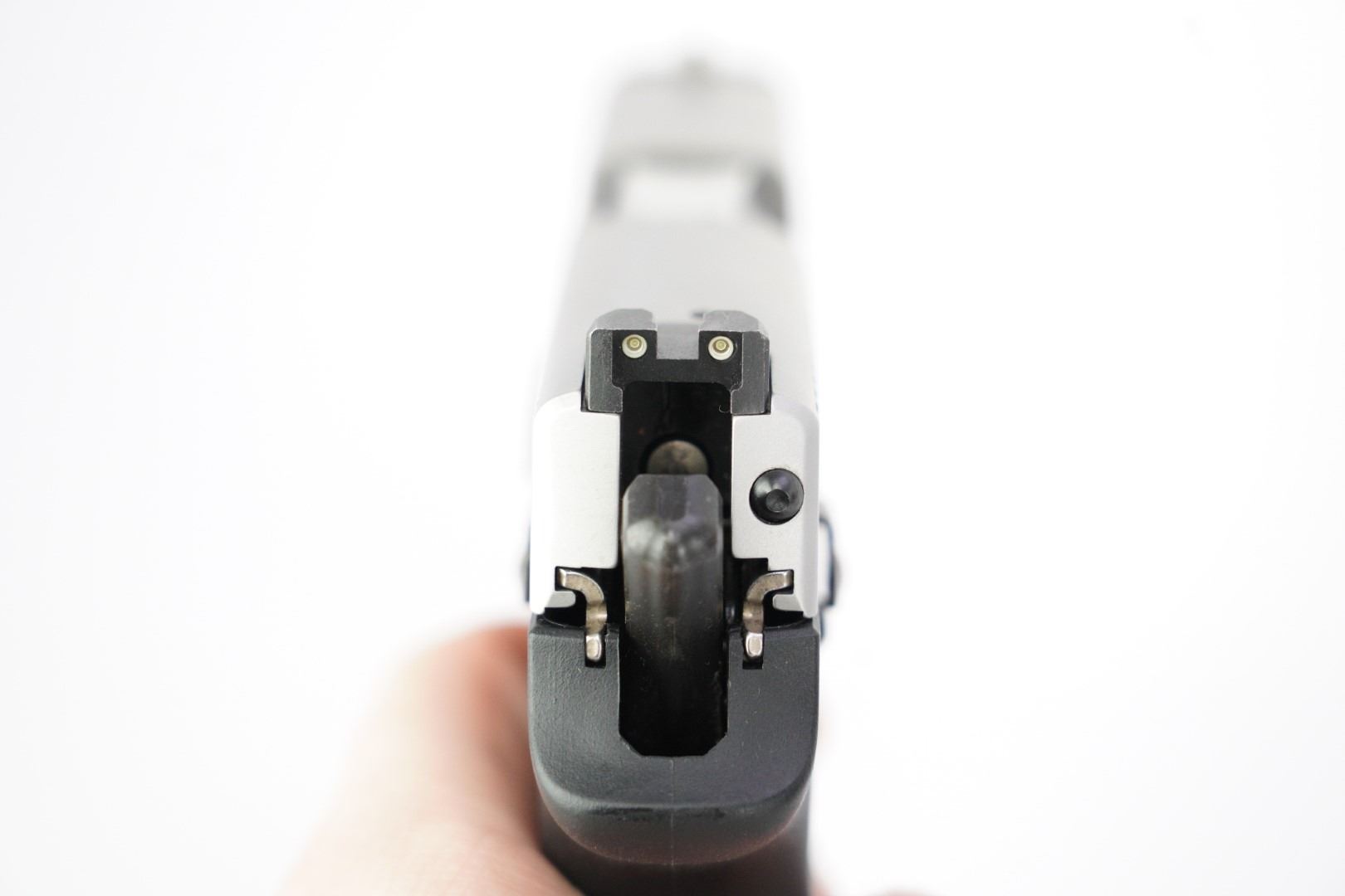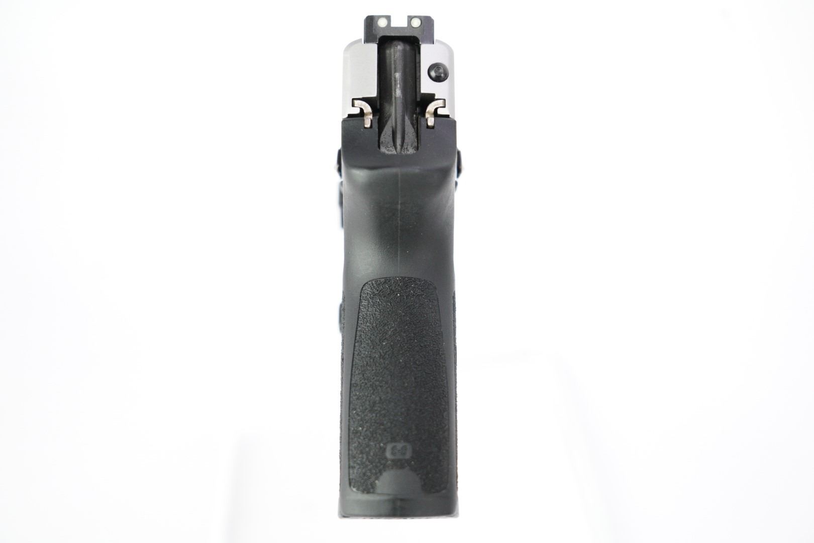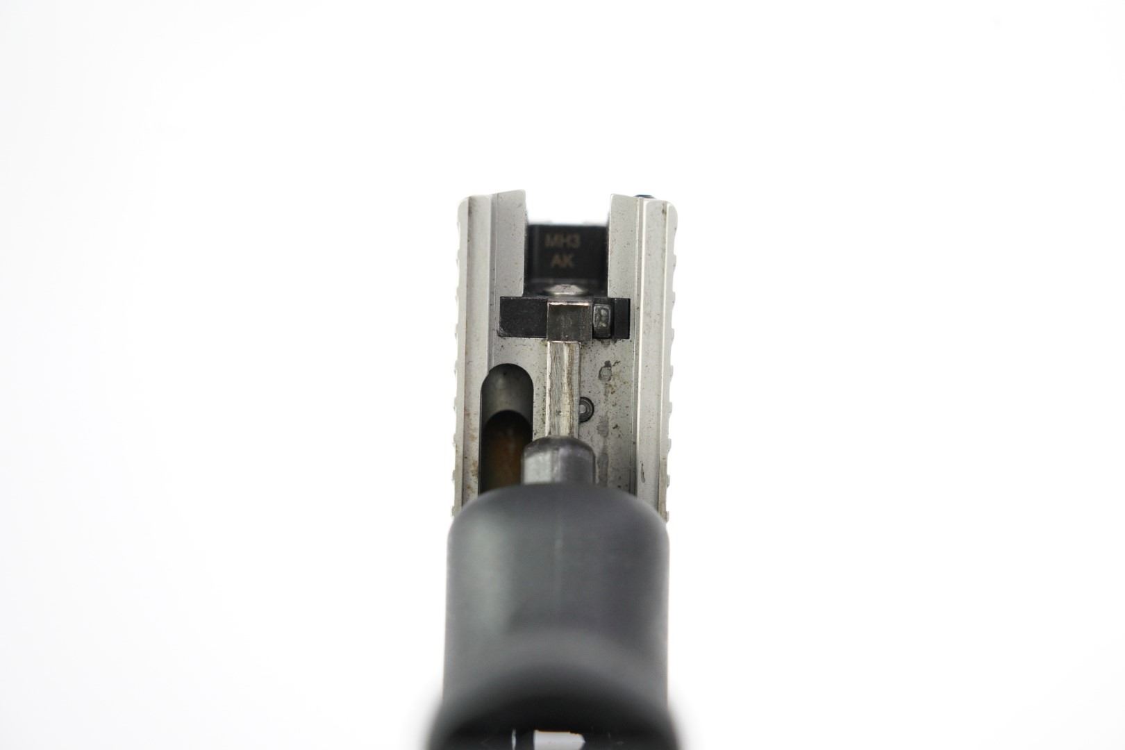 Sights / Optics: The front sight is a dovetailed blade with a square notched rear, tritium inserts are present. The tritium inserts are slightly aged but still function in low-light conditions.