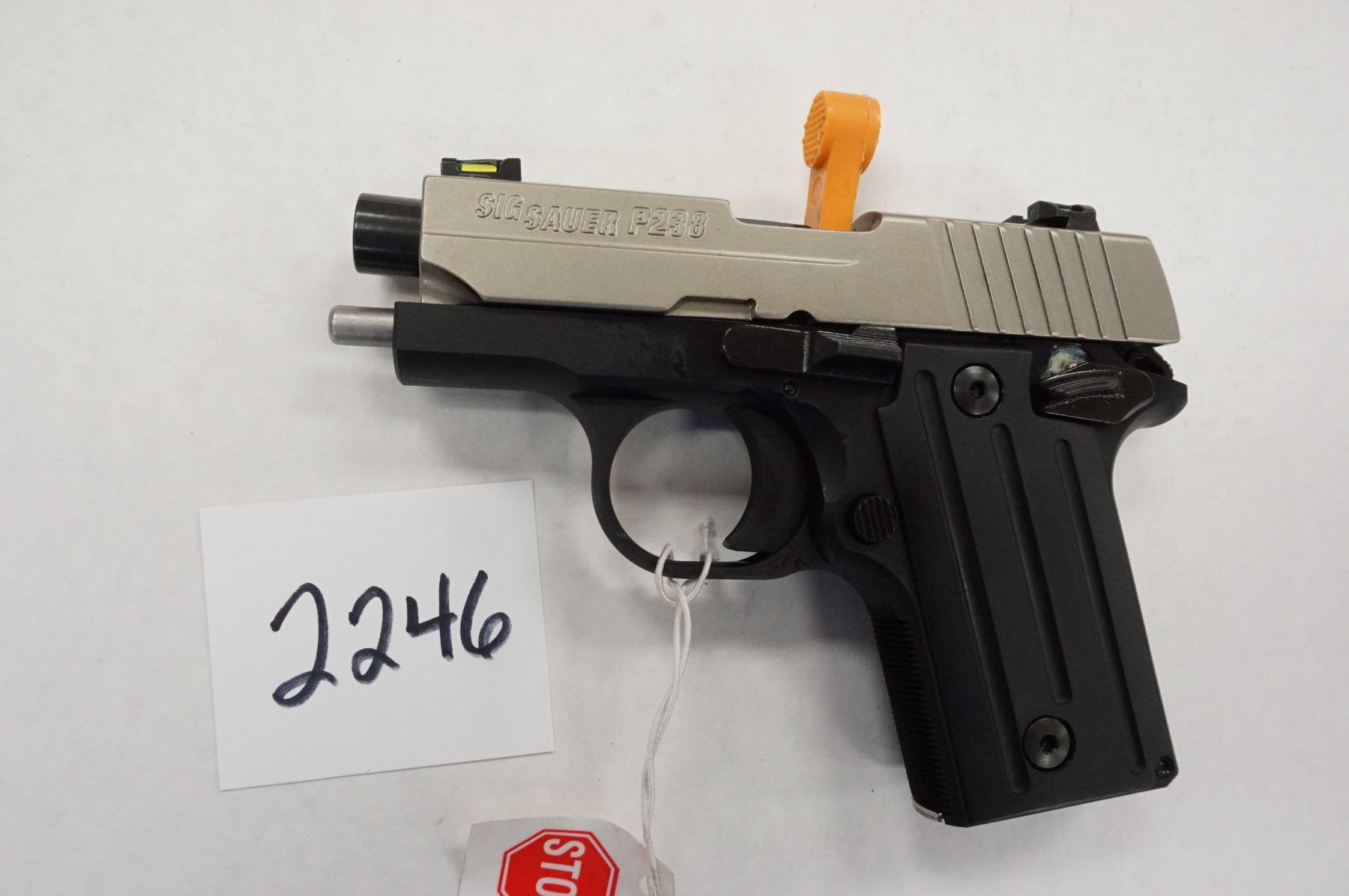 2.7" Barrel, ALLOY Frame, 15.2 oz, Stainless Finish, Single Action, 5.5" Overall, X-Green #6 Fiber Optic Sights, Thumb Safety, 238-380-SP-1, FFL Cost $519, Retail $706, 2-Tone
