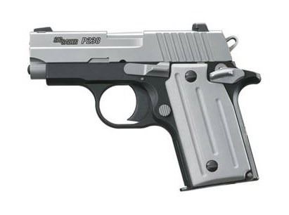 2.7" Barrel, ALLOY Frame, 15.2 oz, Stainless Finish, Single Action, 5.5" Overall,SIGLITE Night Sights, Thumb Safety, 238-380-SP-2, FFL Cost $550, Retail $748, 2-Tone, Silver Polymer Grips