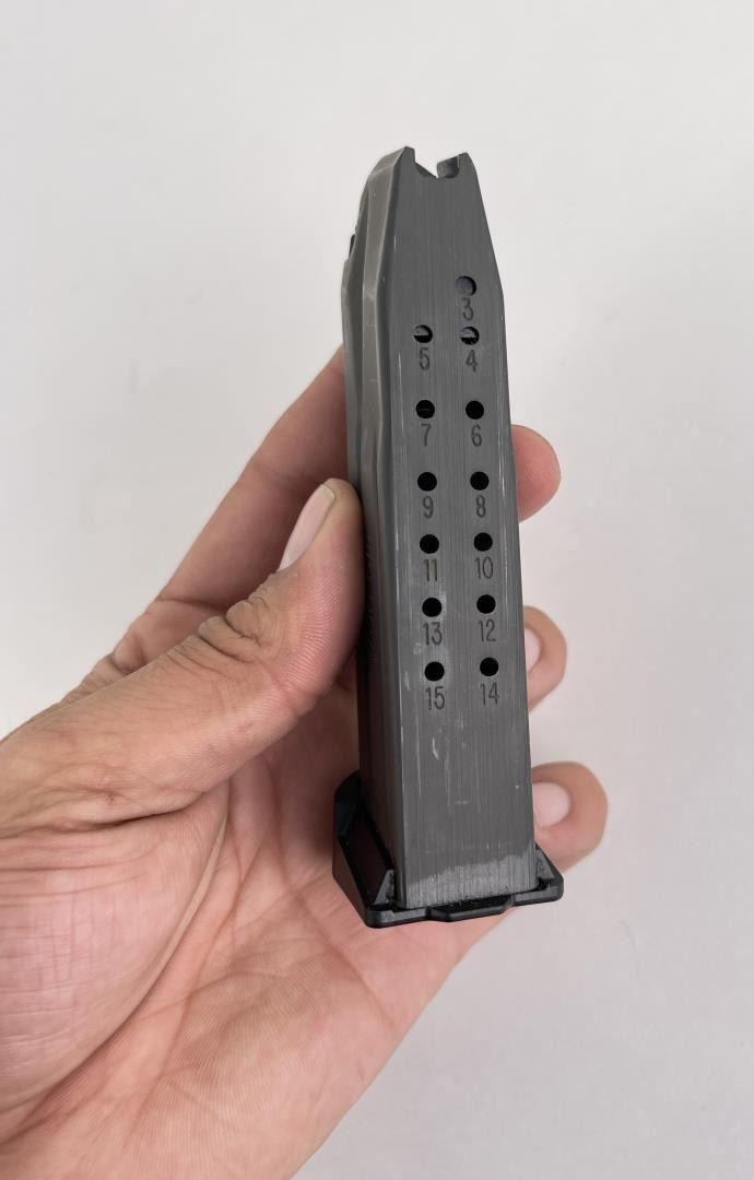 14 round mag and grip. No sales to the following areas, a bid from any of these restricted areas will result in immediate termination of your ability to place bids with our auction company in perpetuity: Internationally, California, Colorado, Connecticut, Hawaii, Maryland, Massachusetts, New Jersey, New York, Vermont, Cook County Illinois, Aurora Illinois, Chicago Illinois, Oak Park Illinois.
