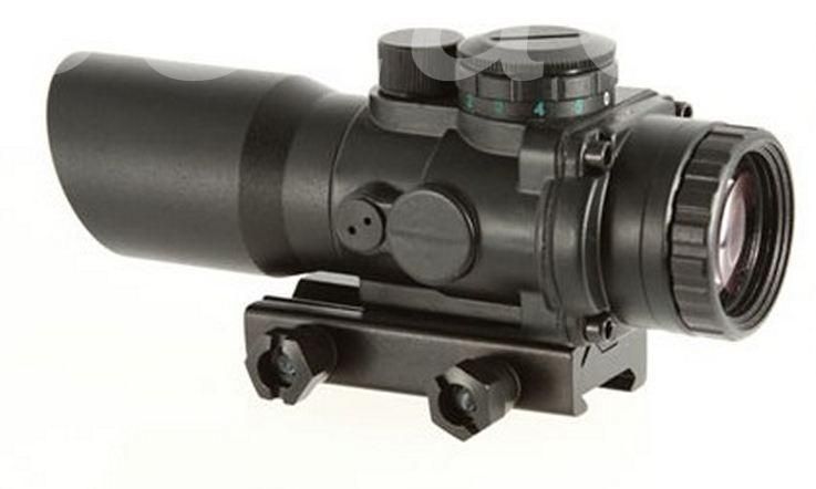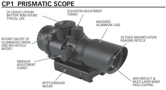 SigTac Compact Prismatic Rifle Scope. 5.56/.223 this scope is graduated specifically for these rounds, green or red variable brightness reticle. FEATURES: 3 reticle modes, brightness settings for each illuminated mode (green and red)-3X fixed magnification ranging finding reticle. Windage & elevation adjustments. Anti-reflect & multilayer band pass optical coating. M1913/Weaver rail mount. ESTIMATE,