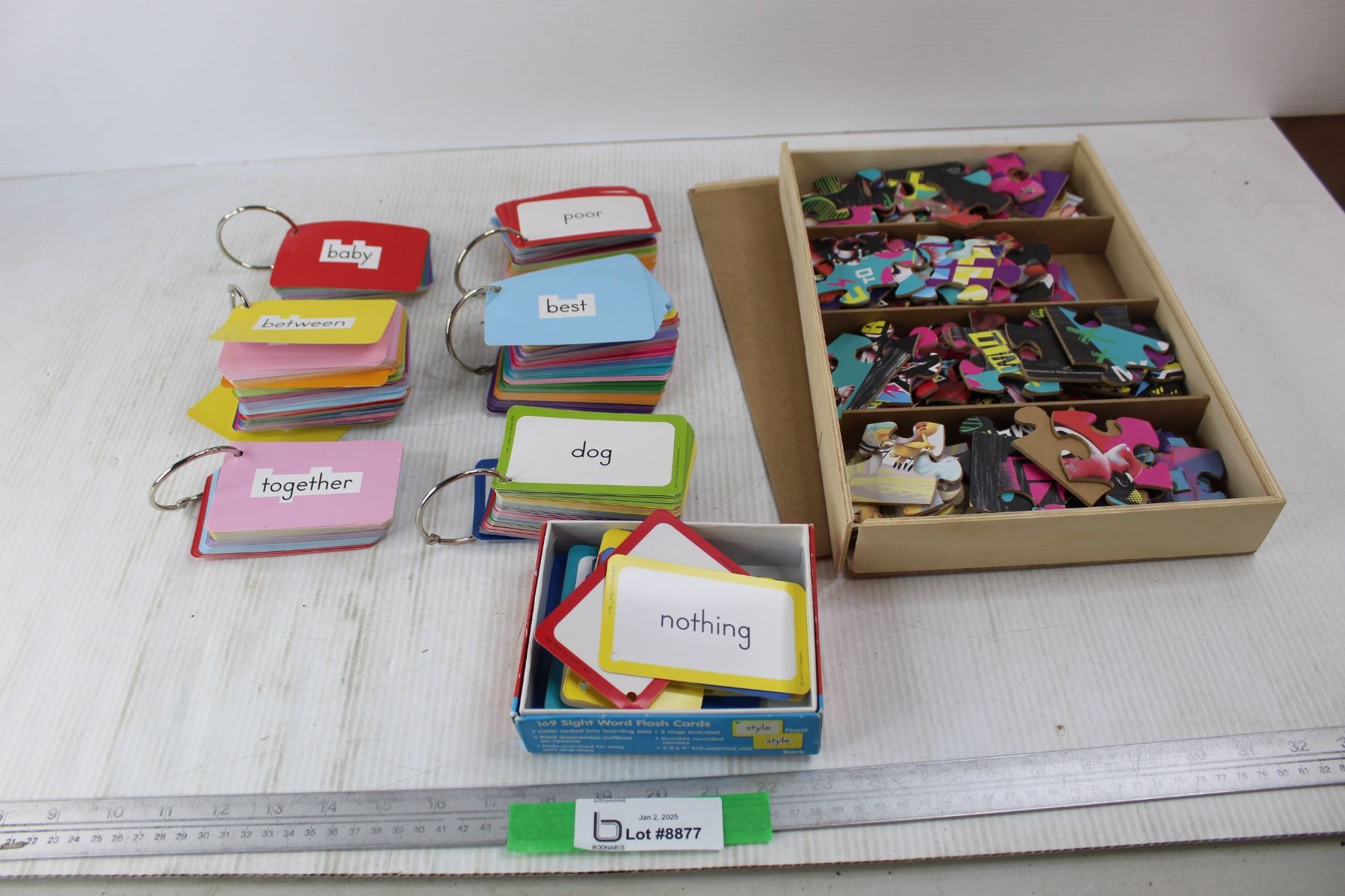 Sight Word Flash Cards, Puzzle w/ Wooden Box- As Is