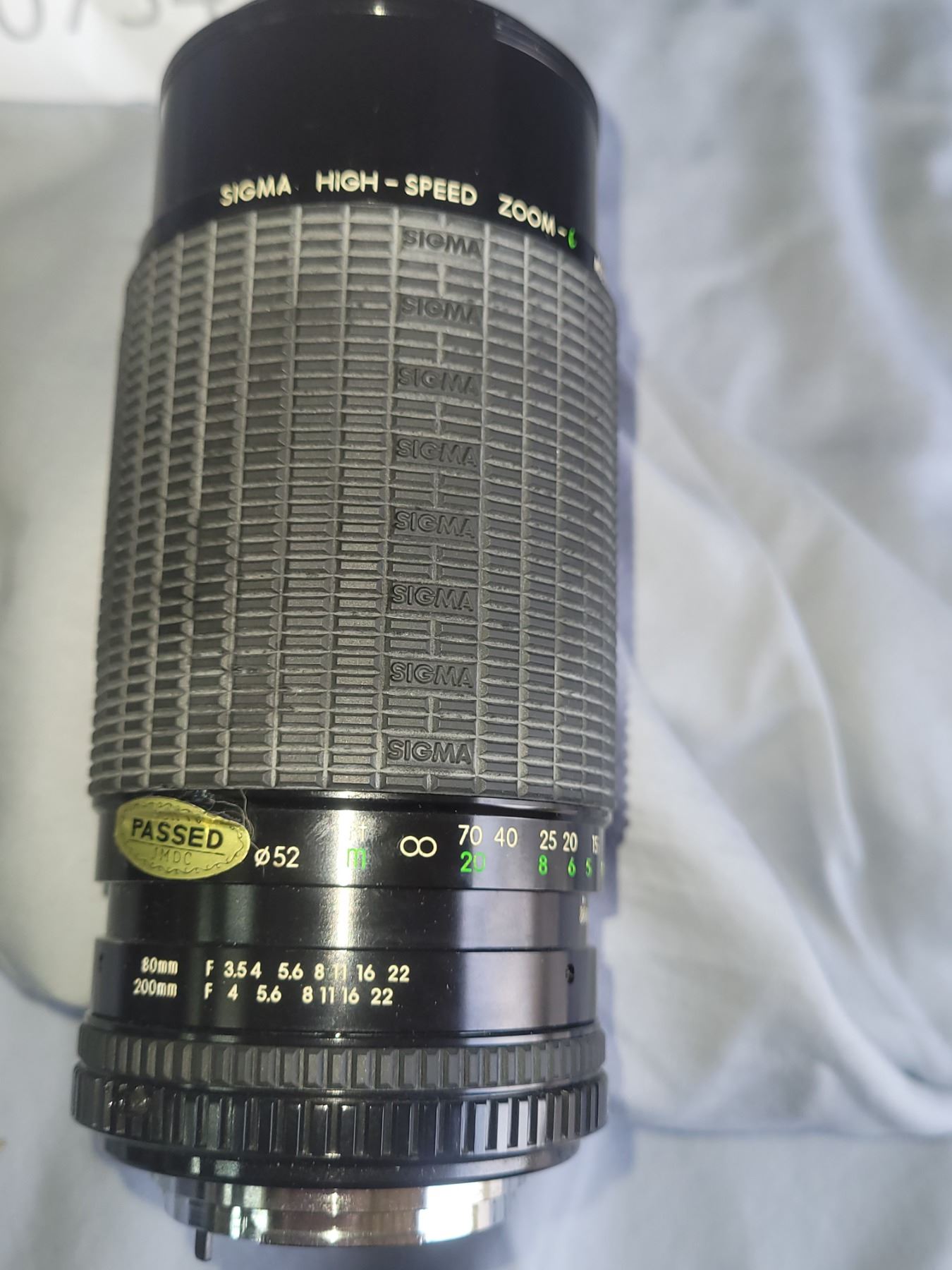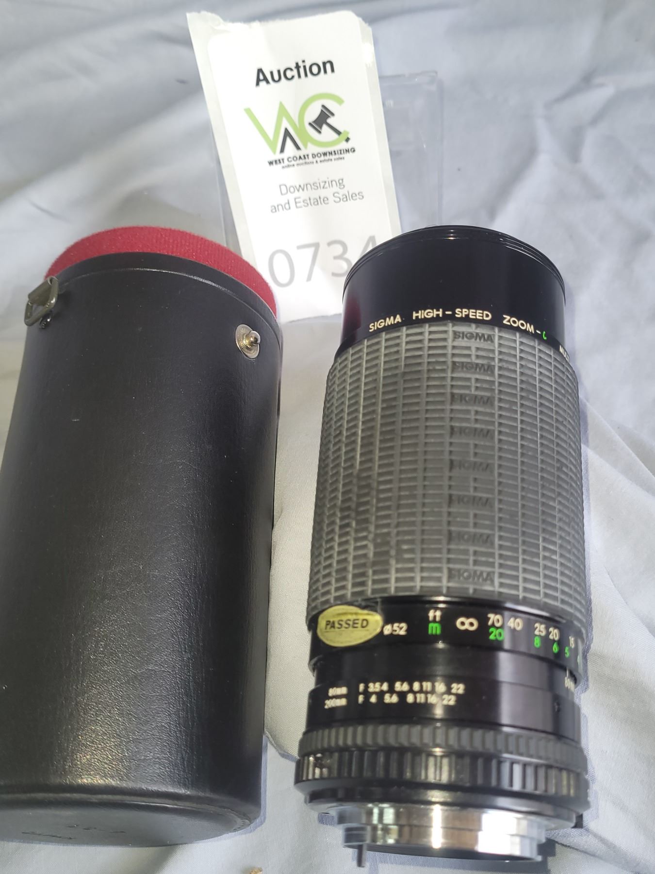 Sigma High - Speed Zoom 80 - 200 mm lens, comes in case, missing lid. Pickup at 9 am