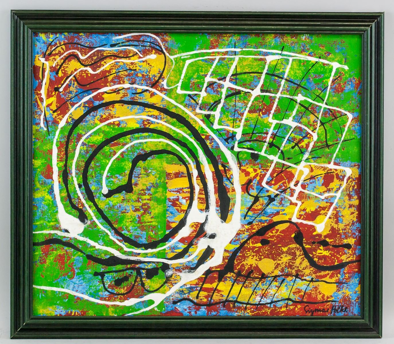 Oil on canvas, framed. Featuring an abstract expressionist composition. Signed Sigmar Polke on the lower right corner. Attributed to Sigmar Polke (1941-2010, German). 34 x 51.5 cm (17.25 x 20 in), Frame: 51.5 x 59 cm (20.25 x 23.25 in). PROVENANCE: This item has limited provenance from a Southern Ontario estate