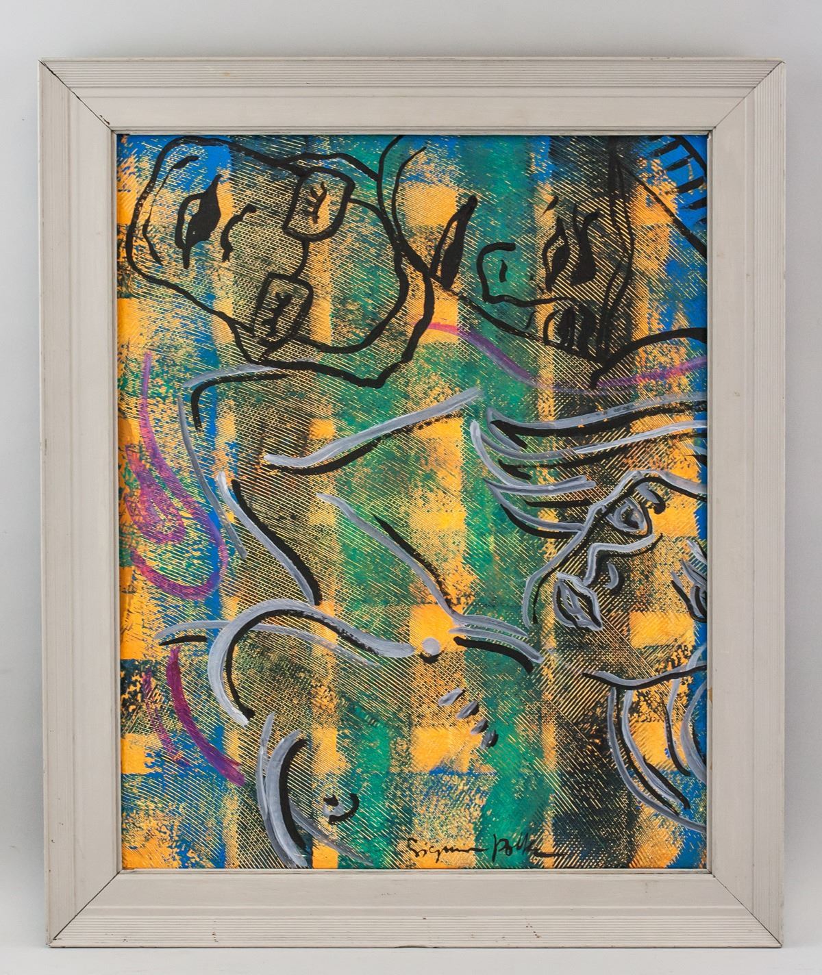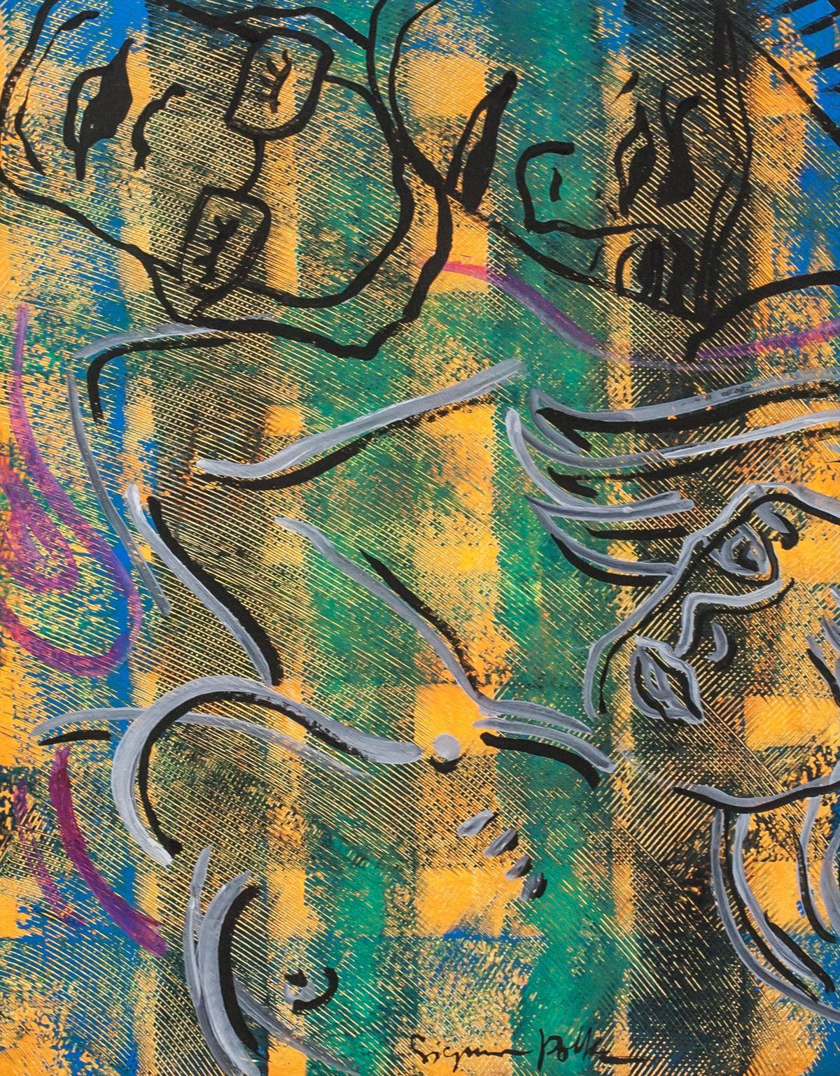 Oil on canvas, framed. Featuring a portrait composition. Signed Sigmar Polke on the lower edge. Attributed to Sigmar Polke (1941-2010, German). 50 x 40 cm (19.5 x 16 inches). Framed size: 61 x 51 cm (24 x 20 inches). PROVENANCE: This lot carries limited provenance from a Southern Ontario estate