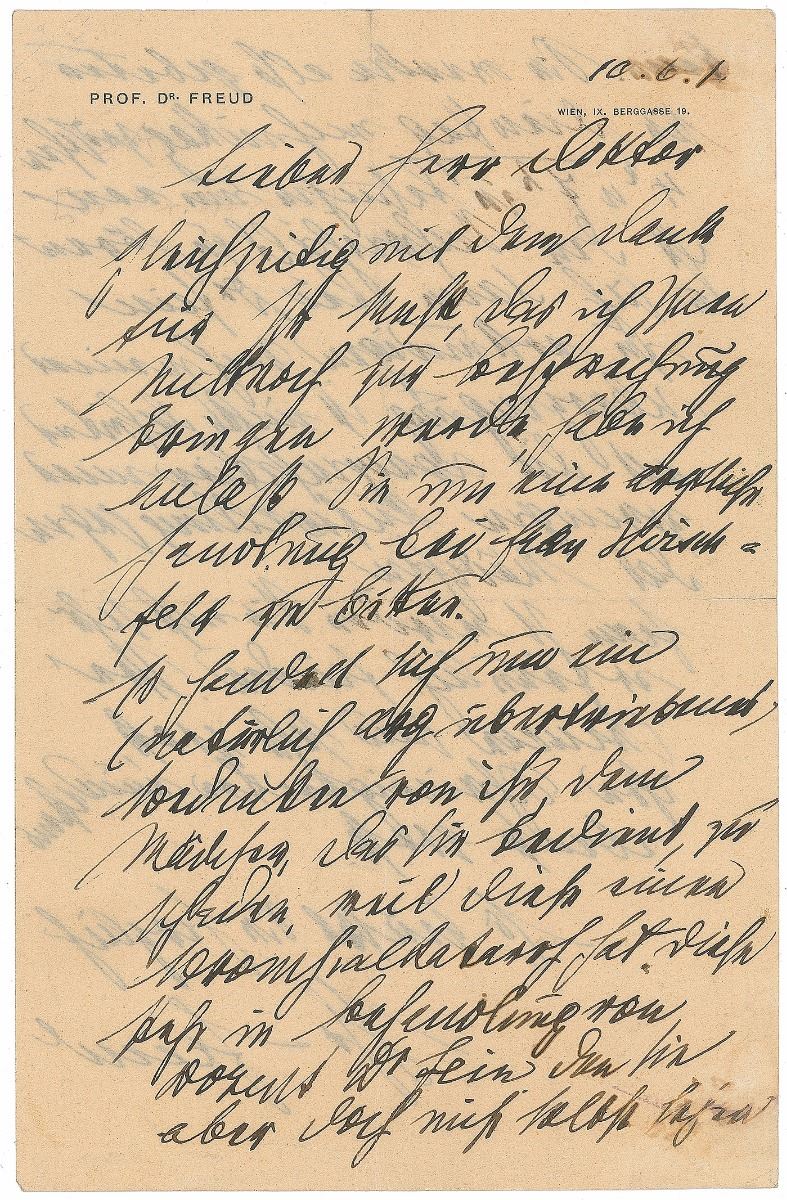 One of Freud’s most well-known patients, Elfriede Hirschfeld first began treatment with the pioneering doctor in 1908. Her case anonymously served as the subject of three of Freud’s articles published in 1913, the most important being ‘The Disposition to Obsessional Neurosis,’ and it was later referenced in at least three more. Despite years of treatment and consultation with his contemporaries—including Carl Gustav Jung, Oskar Pfister, and Ludwig Binswanger—Freud was never able to make much progress with Mrs. Hirschfeld, describing her as his both his ‘grand patient’ and ‘chief tormentor.’ An absolutely spectacular letter concerning a great influence in his psychoanalytic work.