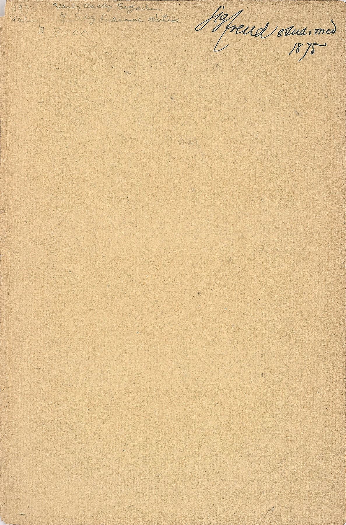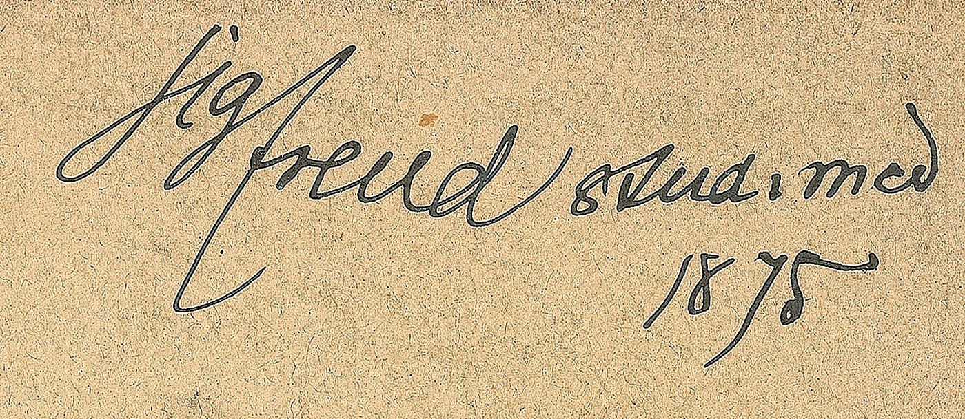 Remarkably early bold ink ownership signature, "Sig. Freud, stud. med., 1875,” on an off-white 3.75 x 5.75 page removed from one of his books. In fine condition. Freud entered the University of Vienna at age 17, where he initially planned to study law; however, he joined the medical faculty at the university, where he studied philosophy under Franz Brentano, physiology under Ernst Brücke, and zoology under Darwinist professor Carl Claus. He graduated with an MD in 1881, and subsequently began his medical career at the Vienna General Hospital. An absolutely remarkable, supremely early signature of the revered pioneer of psychoanalysis.