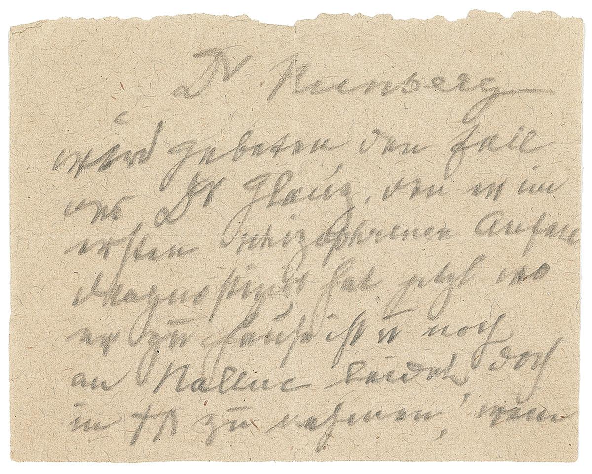 Pioneering and highly influential founder of psychoanalysis (1856–1939) whose theories revolutionized the understanding the human psyche. ADS, in pencil, in German, signed “Freud,” one page both sides, 4.25 x 3.25, no date. Freud pens a psychiatric referral to an esteemed protégé, Dr. Hermann Nunberg. The Freudian psychoanalyst is requested to examine one Dr. Heinrich Glanz, a linguist and author of Jewish folklore, who developed a case of schizophrenia. In full, the penciled memo reads (translated): “Dr. Nunberg is requested to take the case of Dr. Glanz, whom he has diagnosed of his first schizophrenic attack, now at home still suffering from halluc[inations], to take into psychoanalysis when he reports.” In fine condition, with a central vertical fold and a rough top edge.
