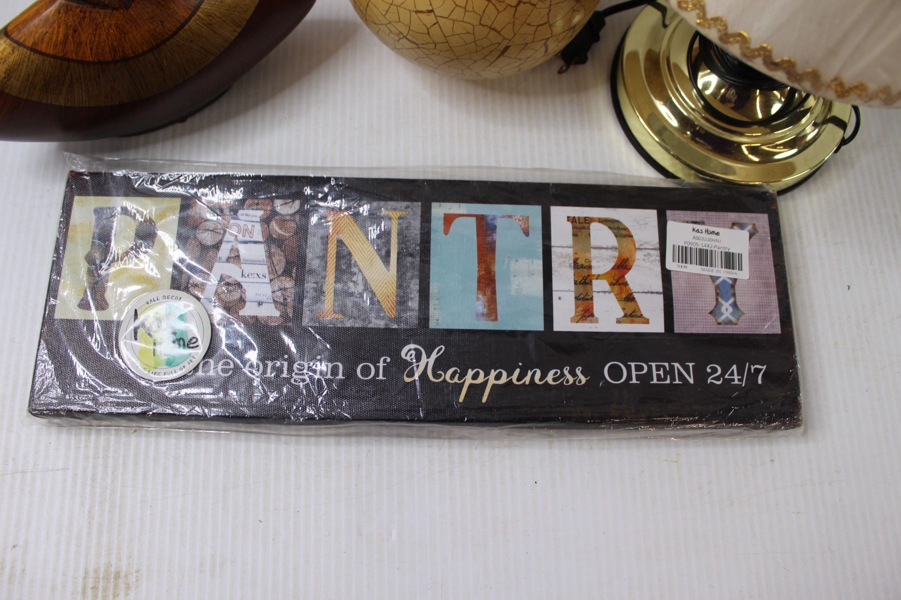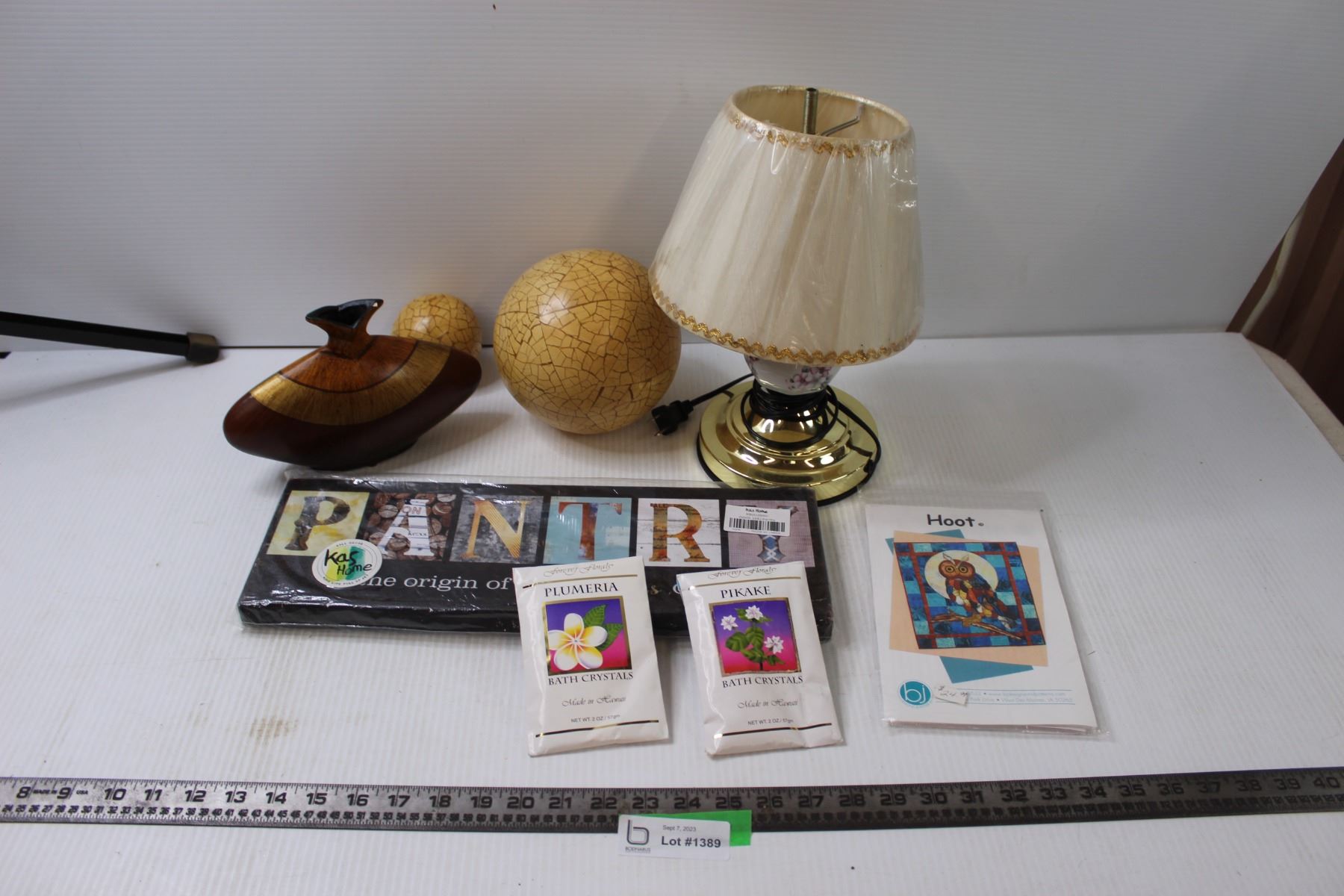 Sign, Bath Salts, Decorative Balls, Lamp and Vase