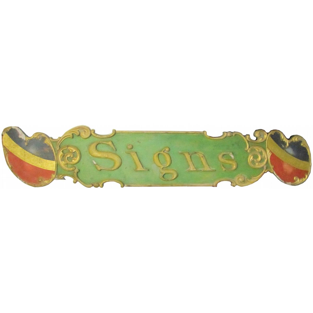"Sign Maker" Outdoor Wood Sign. Bink Schnur/Chas. Green. Some of the trim pieces missing otherwise very good condition. 66 1/2 X 13 inches.