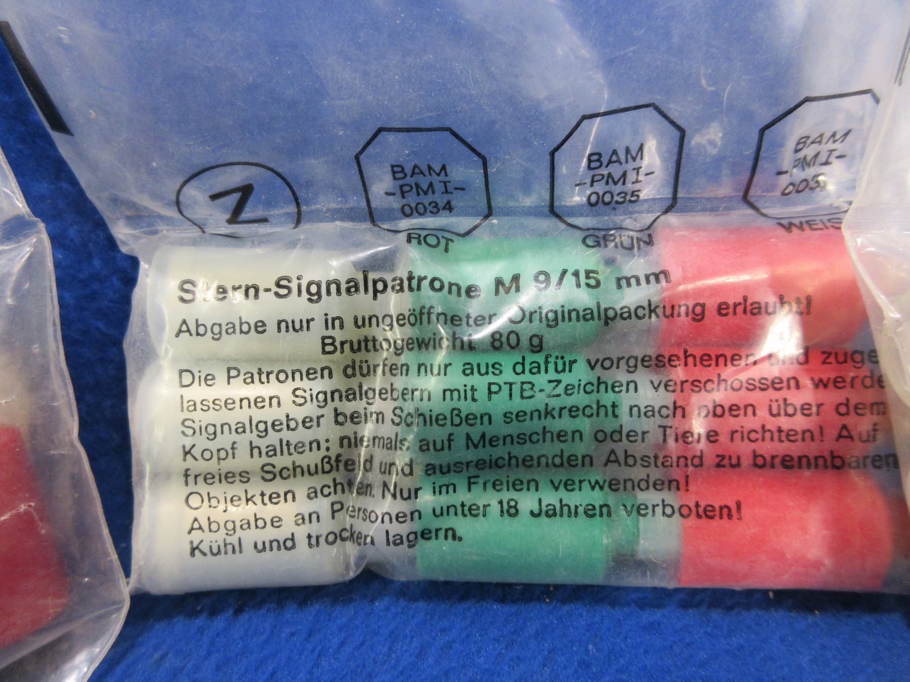 Signal Cartridges - Stern-Signalpatrone M 9/15mm - Red, Green, White - 3 Sealed Bags of 9