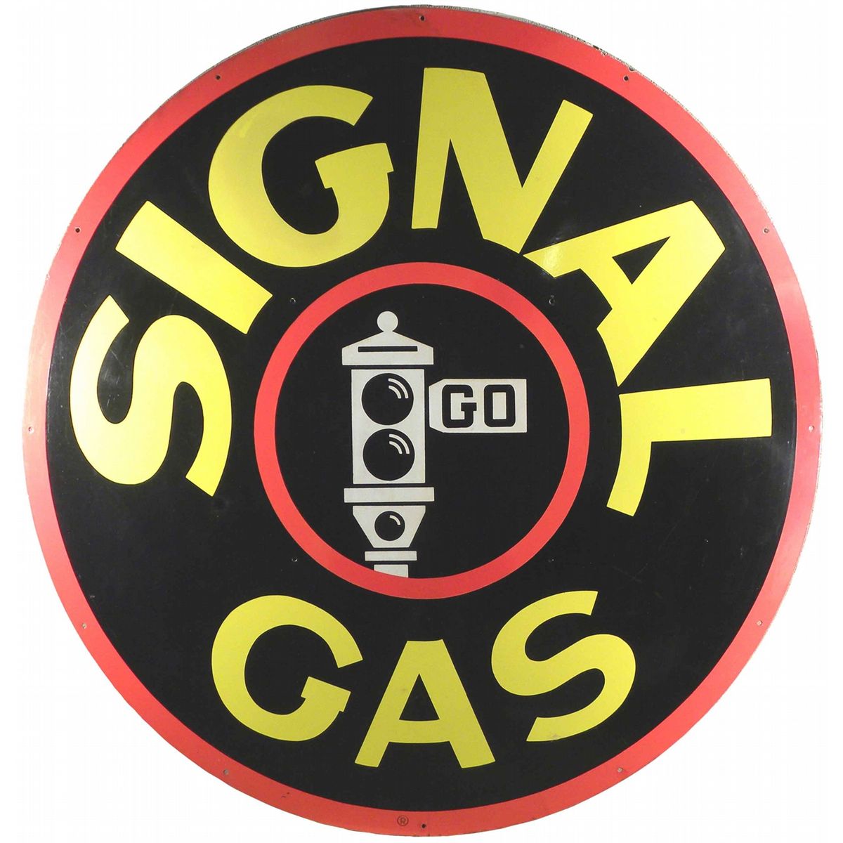 Signal Gas Round Porcelain Sign. Excellent condition. 72 inch diameter.