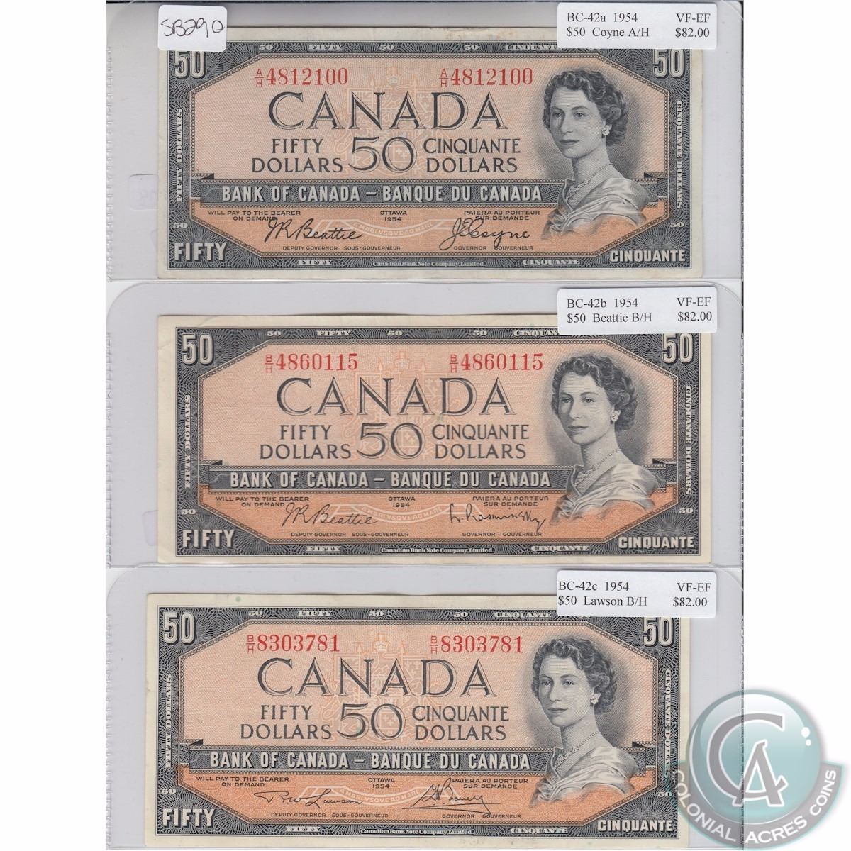 Signature type set 1954 Modified $50 VF-EF. One of each signature combination. 3pcs