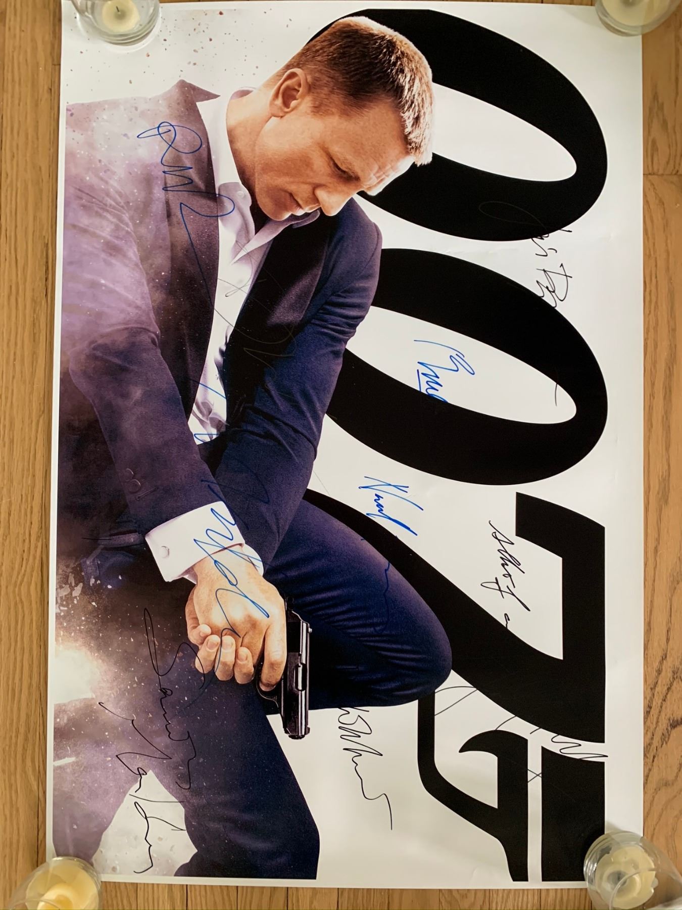 Signed by Daniel Craig, Judi Dench, Javier Bardem, Ralph Fiennes, Naomie Harris, Bérénice Marlohe, Albert Finney, Ben Whishaw, Helen McCrory and Sam Mendes.