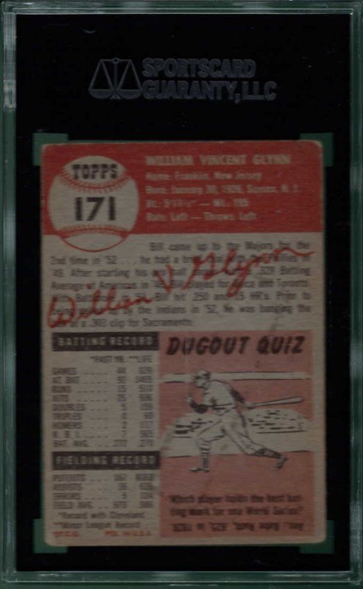 Signed 1953 Topps Bill Glynn #171 JSA authenticated SGC encapsulated.