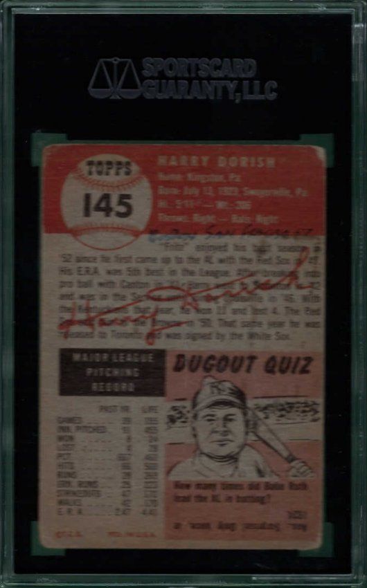 Signed 1953 Topps Harry Dorish #145 JSA authenticated SGC encapsulated.