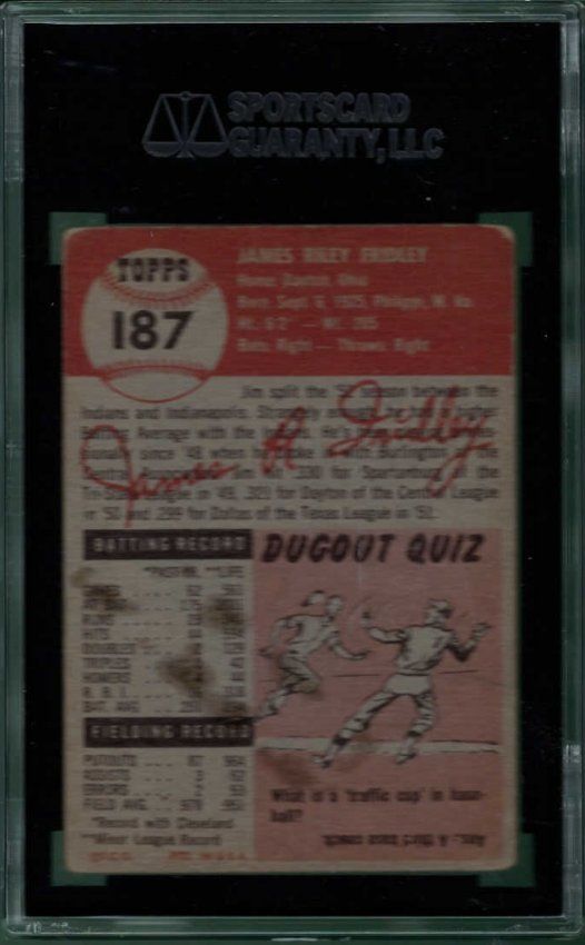 Signed 1953 Topps Jim Fridley #187 JSA authenticated SGC encapsulated.