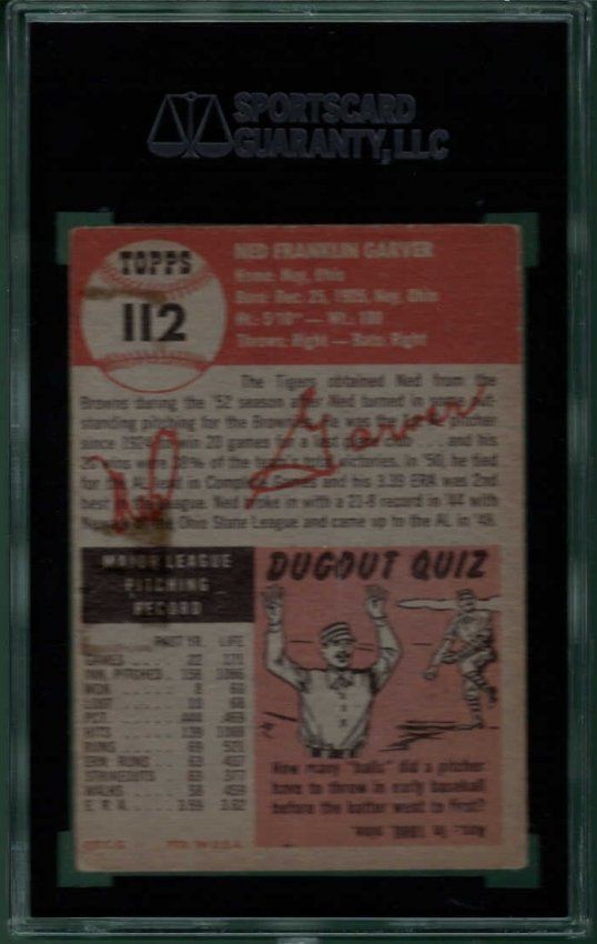 Signed 1953 Topps Ned Garver #112 JSA authenticated SGC encapsulated.