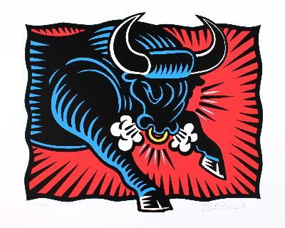 Reference #: ULYY9617-B Artist Name: Morris, Burton Title: The Bull Medium: Serigraph Edition Size: 375 Year: 1997 Paper Size: 14 x 17 inches Image Size: 12.25 x 14 inches Condition: A: Mint Notes: From the "Herd on the Street" portfolio. Signed, Numbered and Dated in Pencil.