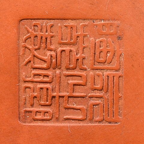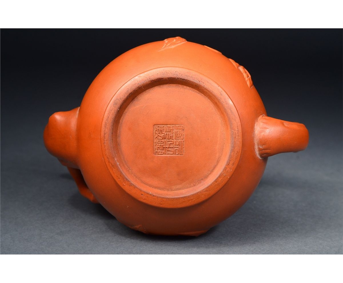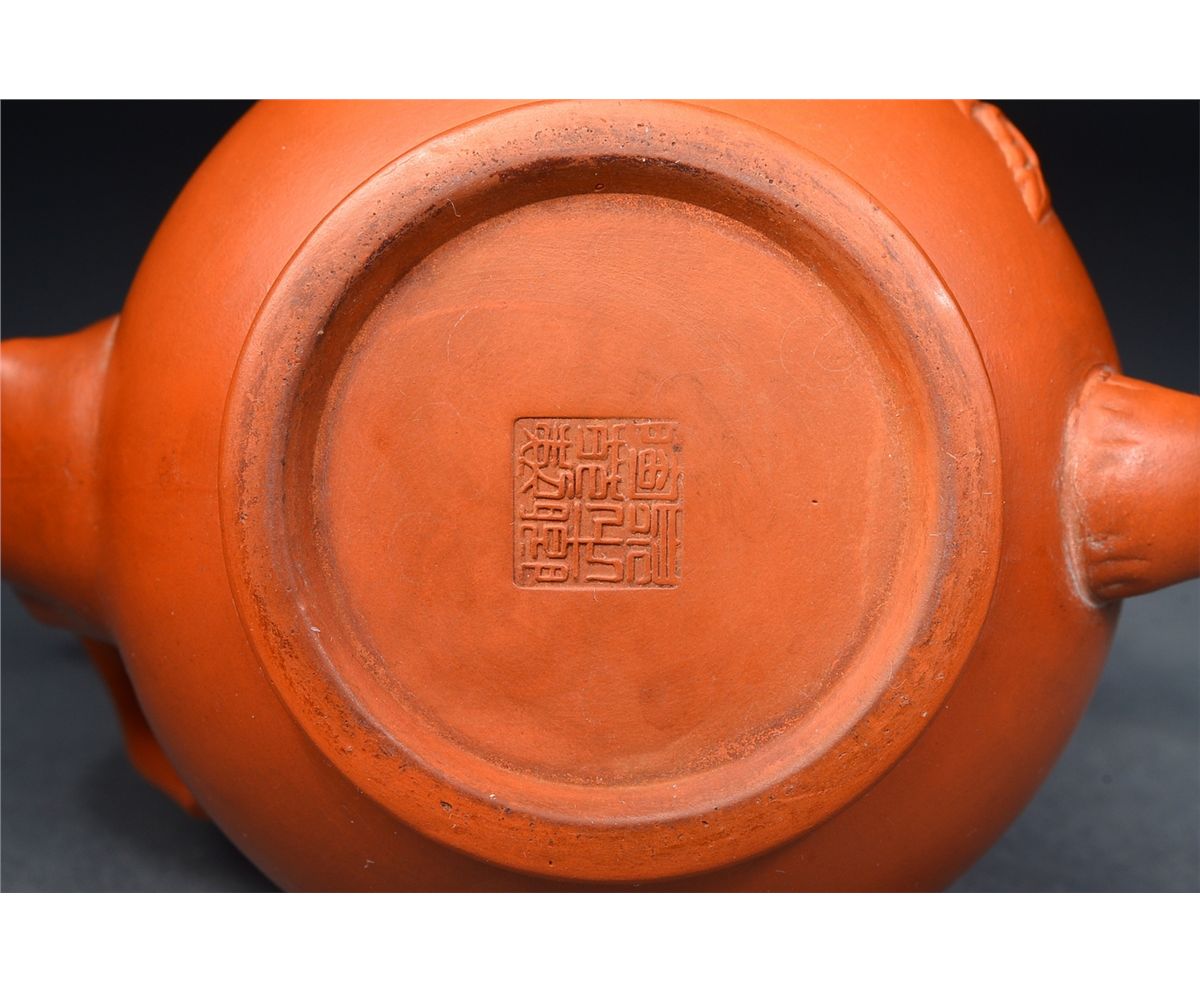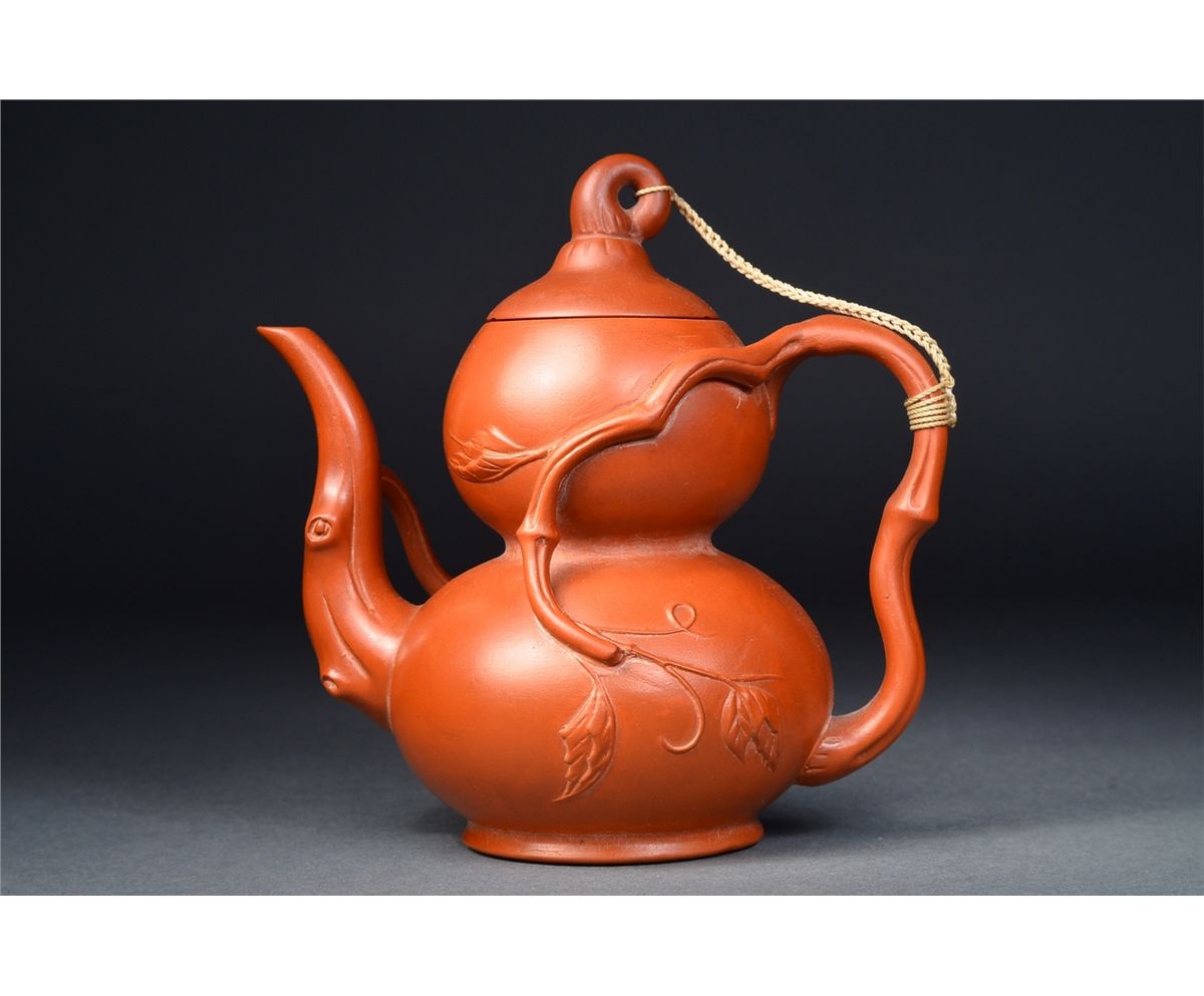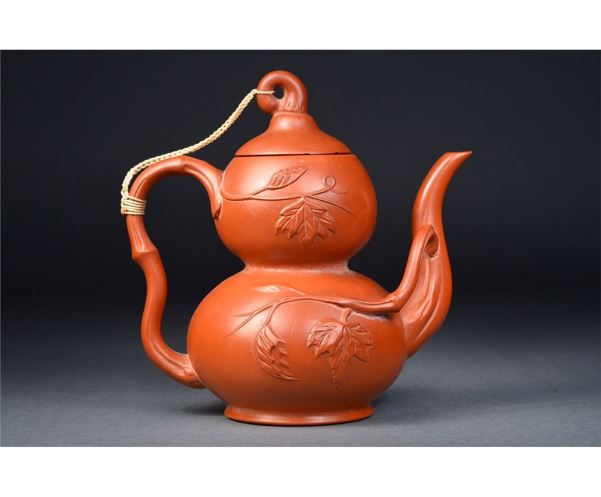 19th Century Chinese Yixing tea pot; of double gourd form; six-character Scholar's Mark on base; H: 14 cm, L: 14 cm