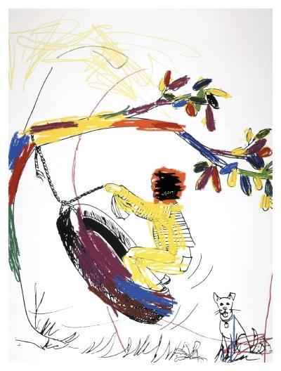 Reference #: ULLC1165-B Artist Name: Ligon, Glenn Title: Boy on Tire Medium: Serigraph Edition Size: 108 Year: 2004 Paper Size: 41 x 31.5 inches Image Size: 41 x 31.5 inches Condition: A: Mint Notes: Printed for the Lincoln Center Arts program in New York City. Signed and numbered by the artist.