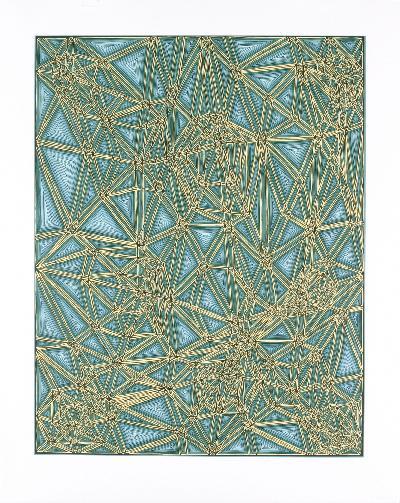 Notes: "Shifted Lattice" is a 14 color silkscreen printed on Reeves textured Rag. The print measures 37 x 27.5 inches and is an edition of 118 plus 18 artist proofs. Signed and numbered in pencil.