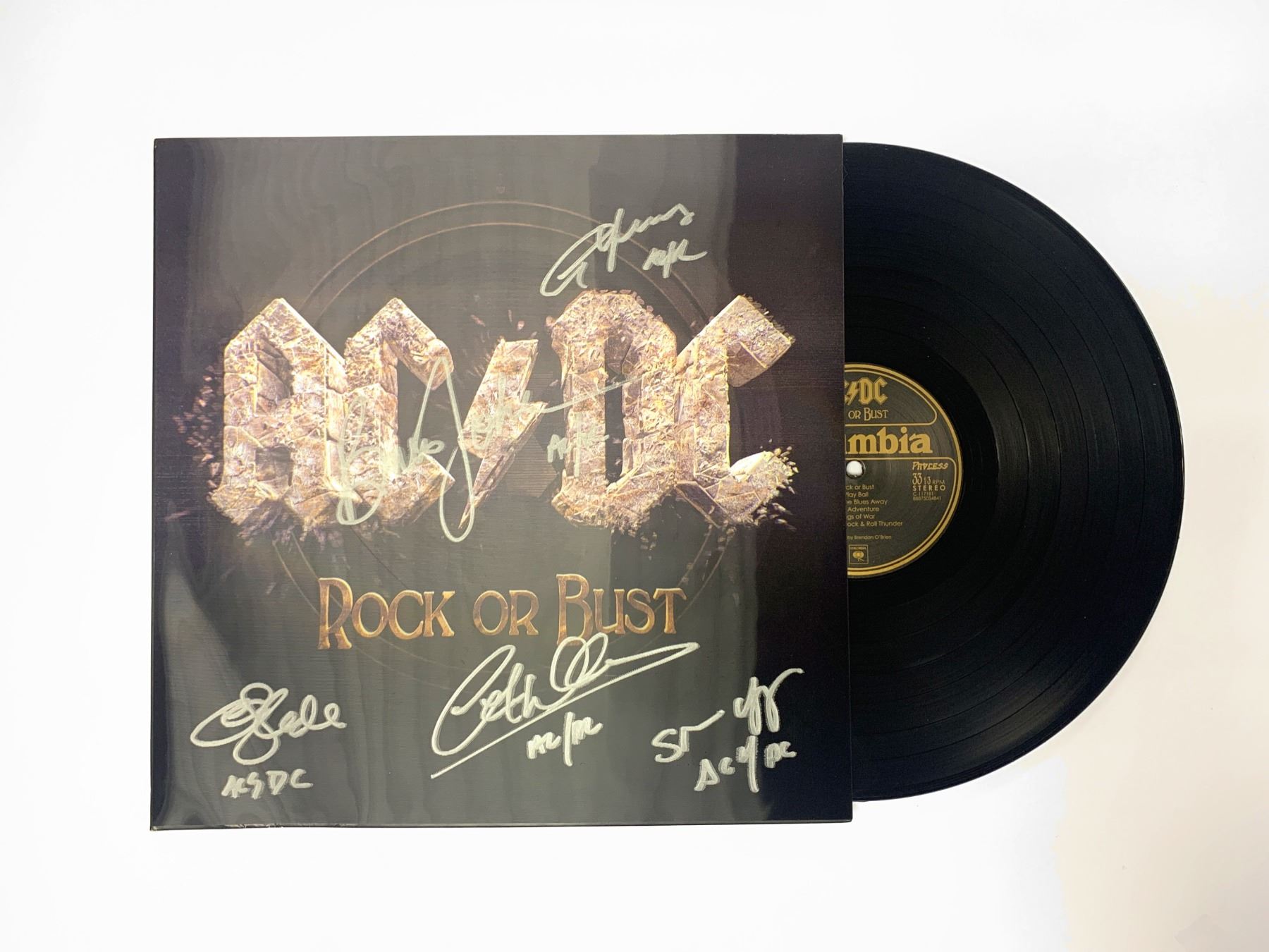 Autographed By: Angus Young, Stevie Young, Brian Johnson, Cliff Williams, Phil Rudd
