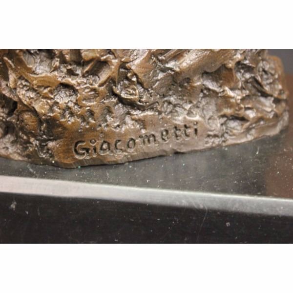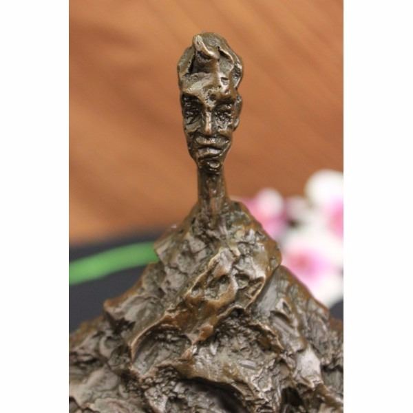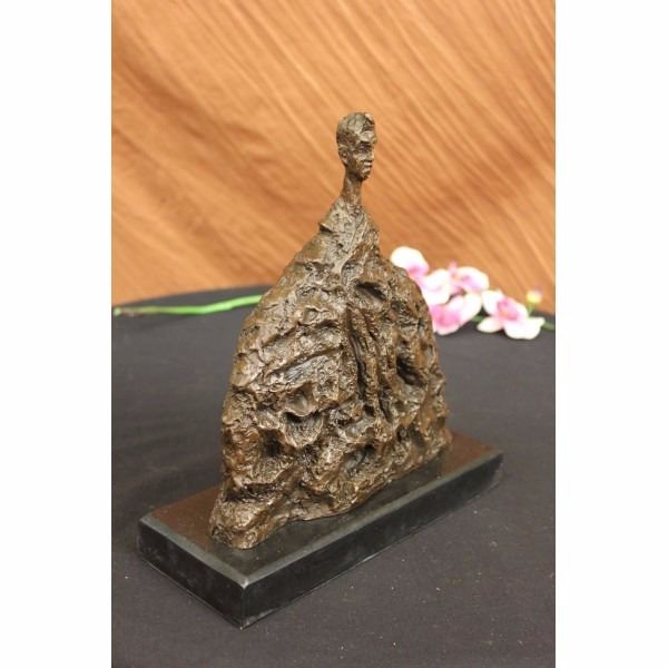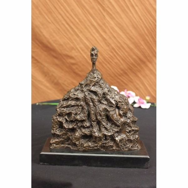 A key artist in the Surrealist art movement Alberto Gia cometti sculpted his subjects in the way that he saw them in his own mind. How, one must ask, did he see this man who he has depicted in the sculpture of a thin head and neck positioned atop a high and wide mountain rock? The nature of this work of art drives the observer to form their own unique analysis of the juxtapositions and textures of the piece. This sculpture will surely be a conversation piece as you and others draw upon your own emotional responses and ideas about the art. It is set on a rectangular black marble base. SignedGia Cometti, it was crafted using the lost wax method. Condition : This sculpture is in perfect condition. Bronze Dimensions with Marble Base:Height 11" x Width 10" Marble Dimensions:10" X 4" Height without base: 10" Weight : 10 LBS Inventory : 65DS4935856