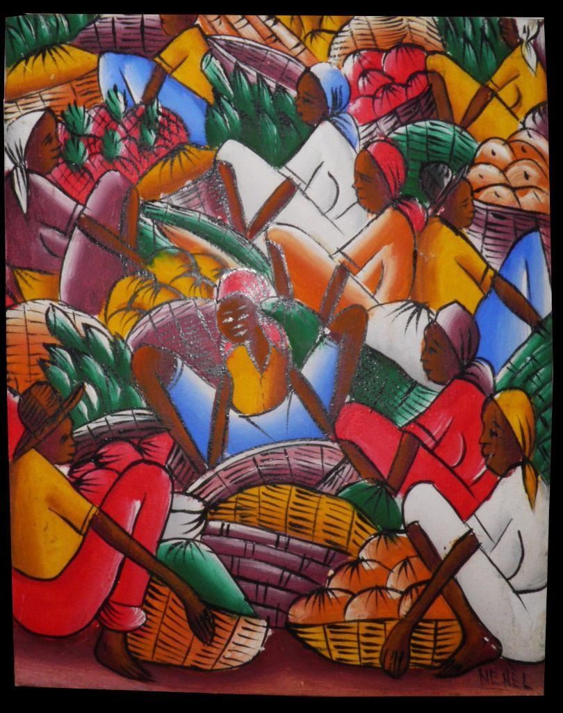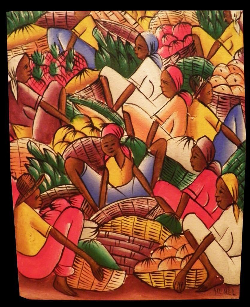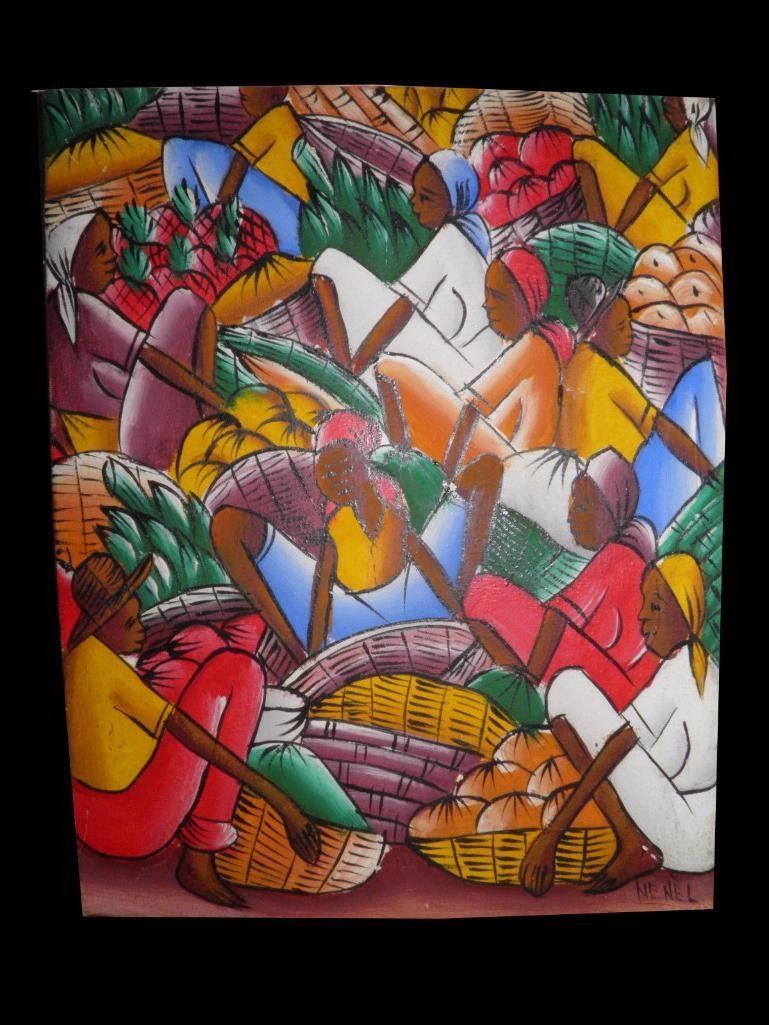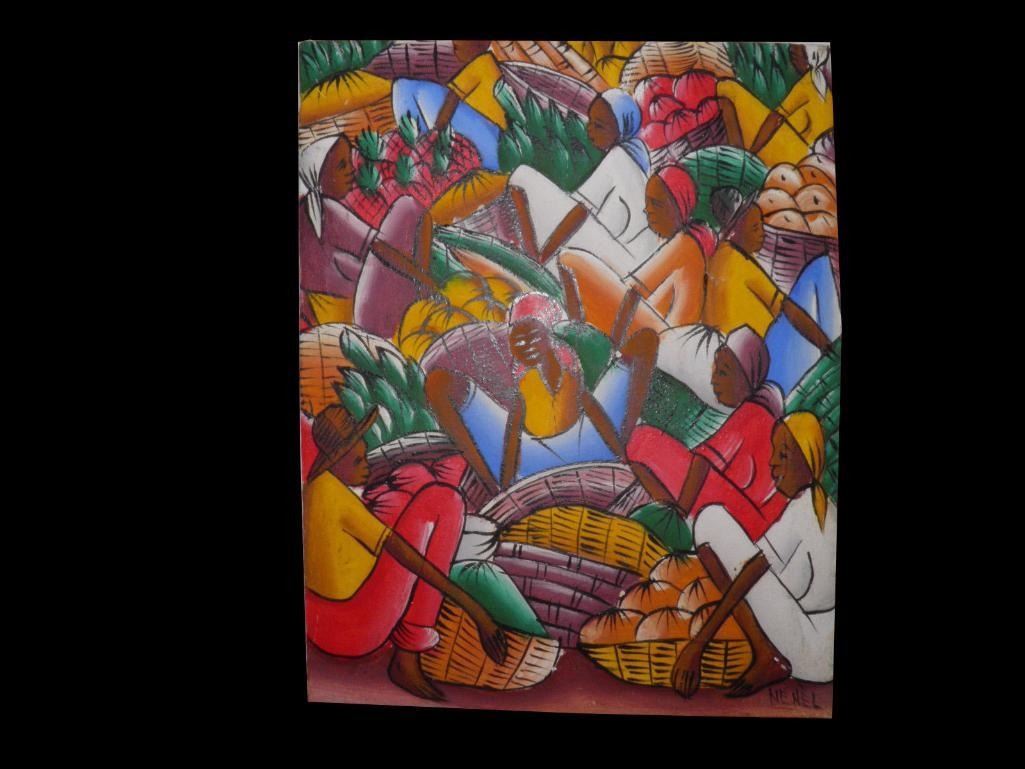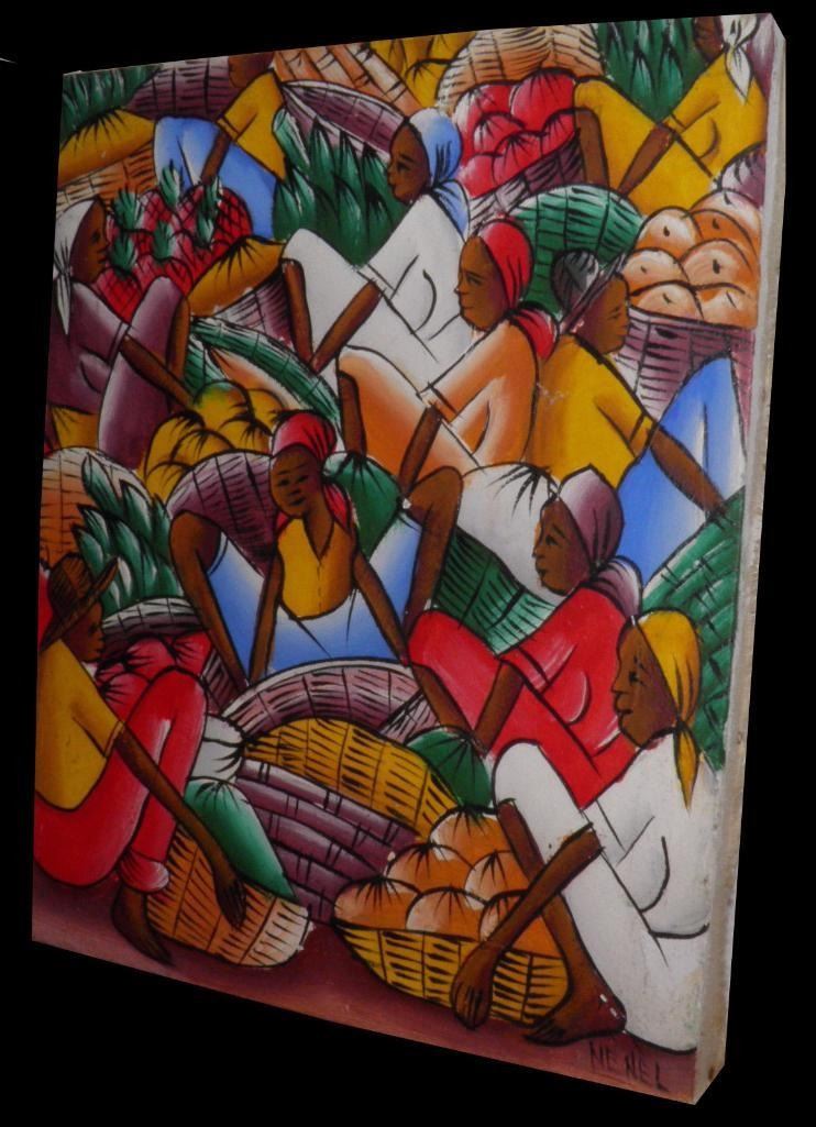 Signed Acrylic Painting, Haitian Farmers Market Ready To Frame 43.84 Idiot Sale