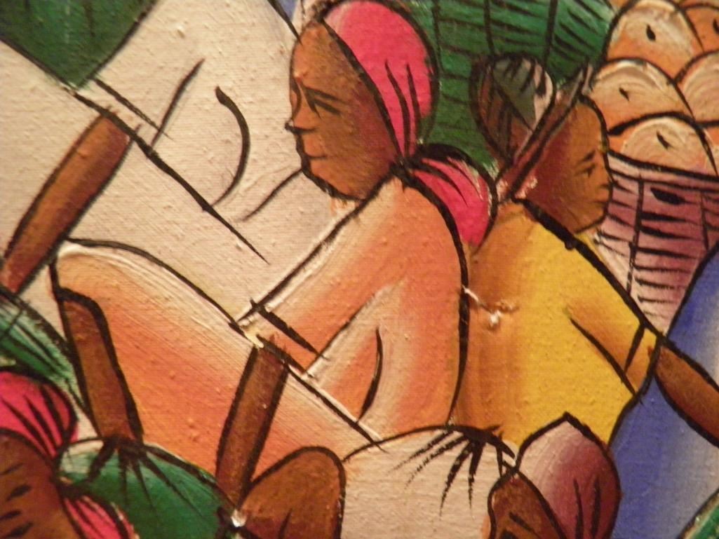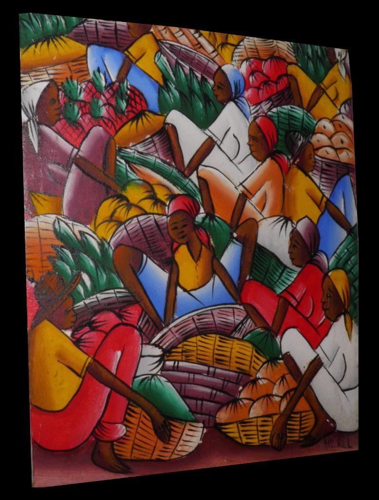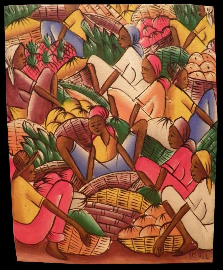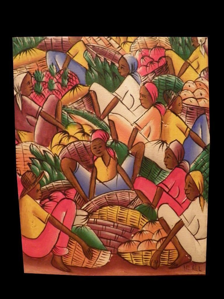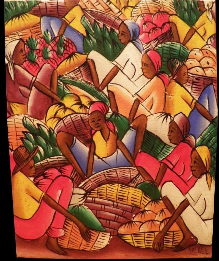 Signed Acrylic Painting, Haitian Farmers Market Ready To Frame 43.84 Idiot Sale