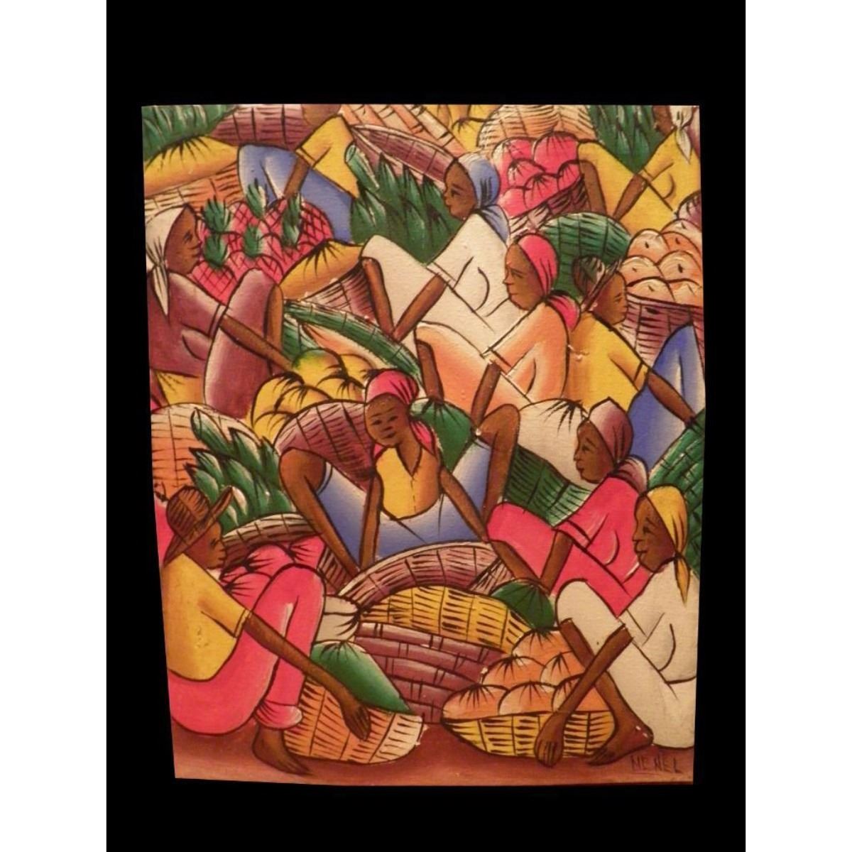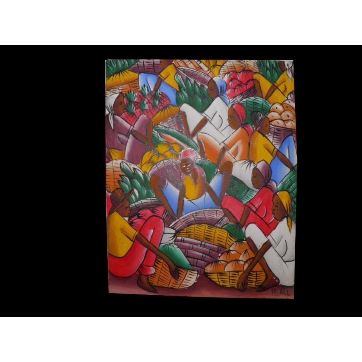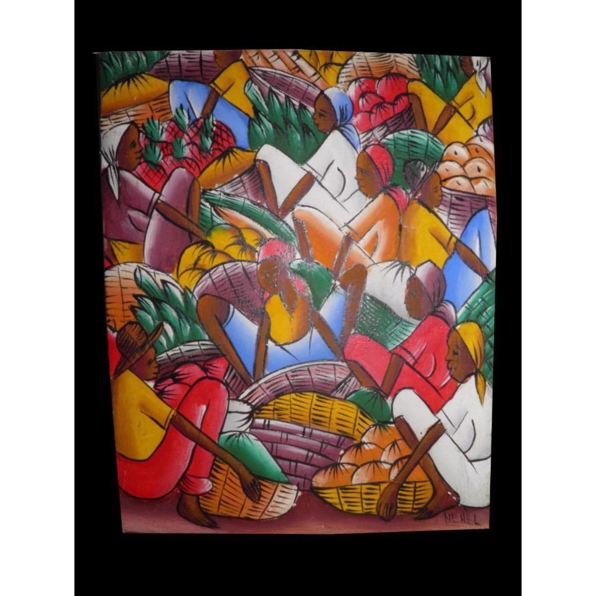 Signed Acrylic Painting, Haitian Farmers Market Ready To Frame 43.84 Idiot Sale Signed®: Signed Region of Origin: Haiti Original/Reproduction: Original Listed By Dealer or Reseller Subject: Ethnic Medium: Oil Size Type/Largest Dimension: Small (Up to 14in.)