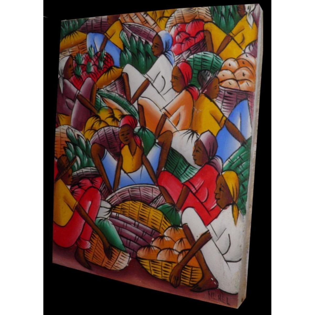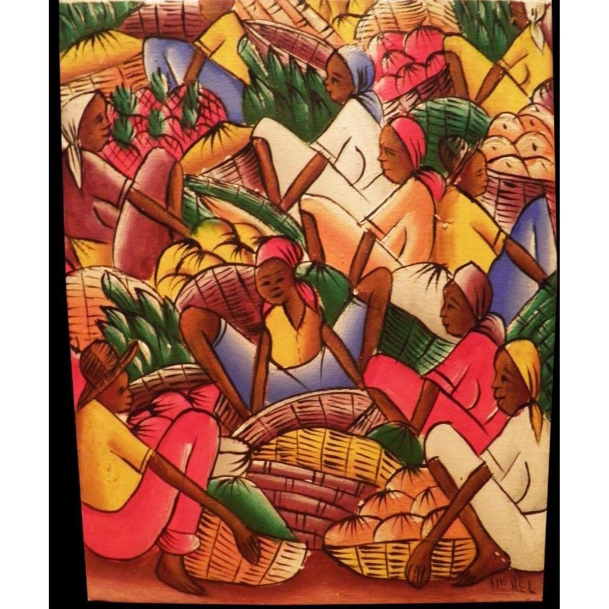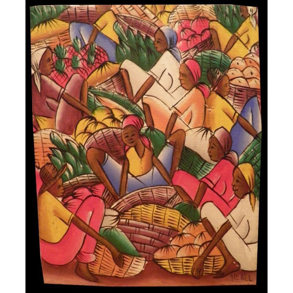 Signed Acrylic Painting, Haitian Farmers Market Ready To Frame 43.84 Idiot Sale Signed®: Signed Region of Origin: Haiti Original/Reproduction: Original Listed By Dealer or Reseller Subject: Ethnic Medium: Oil Size Type/Largest Dimension: Small (Up to 14in.)