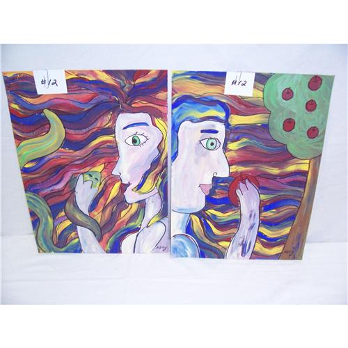 Outsider Art Watercolor Of Adam & Eve By Nancy Lane 2000 11" x 15"