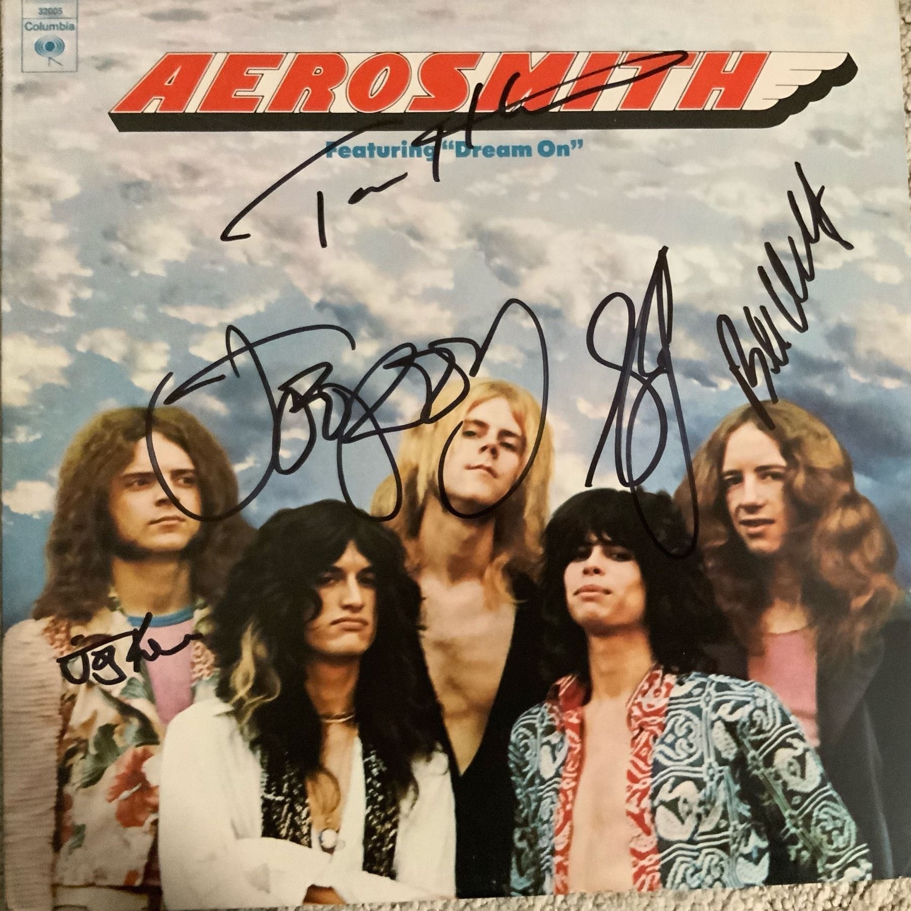 Signed by Steven Tyler, Joe Perry, Brad Whitford, Tom Hamilton, and Joey Kramer