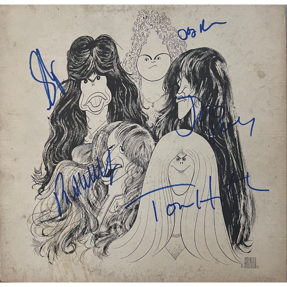 Signed by Steven Tyler, Joe Perry, Brad Whitford, Tom Hamilton, and Joey Kramer