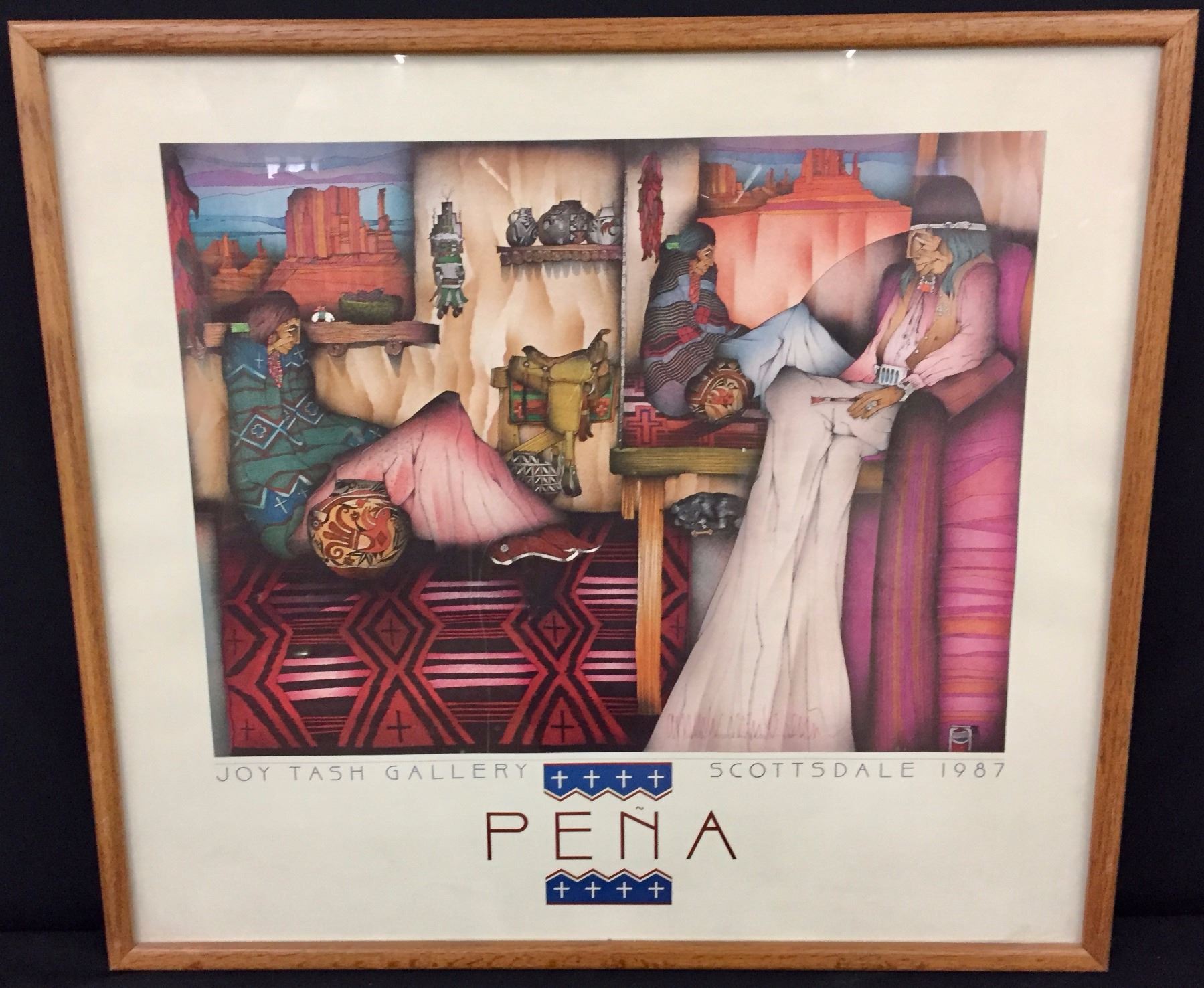 Maker: Amado Pena. Approx. Age: Circa 1987. Size: Measures approx. 31” w x 28” h includes frame. Additional Info: Framed and signed Amado Pena poster. Condition: Good for it’s age, normal wear expected. Please look closely at the pictures - they are an important part of our description. Shipping: There will be a $10 handling / packaging fee for shipping this lot. The actual cost of postage will be added on top of that.