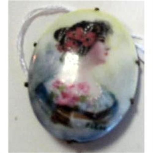 Signed Antique Hand Painted Porcelain Pin