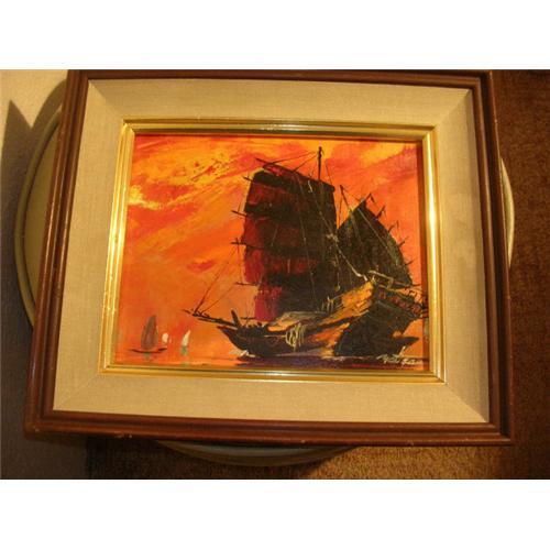 <tr><td>Title:Signed Antique Oil on Canvas Ship Painting</td></tr>