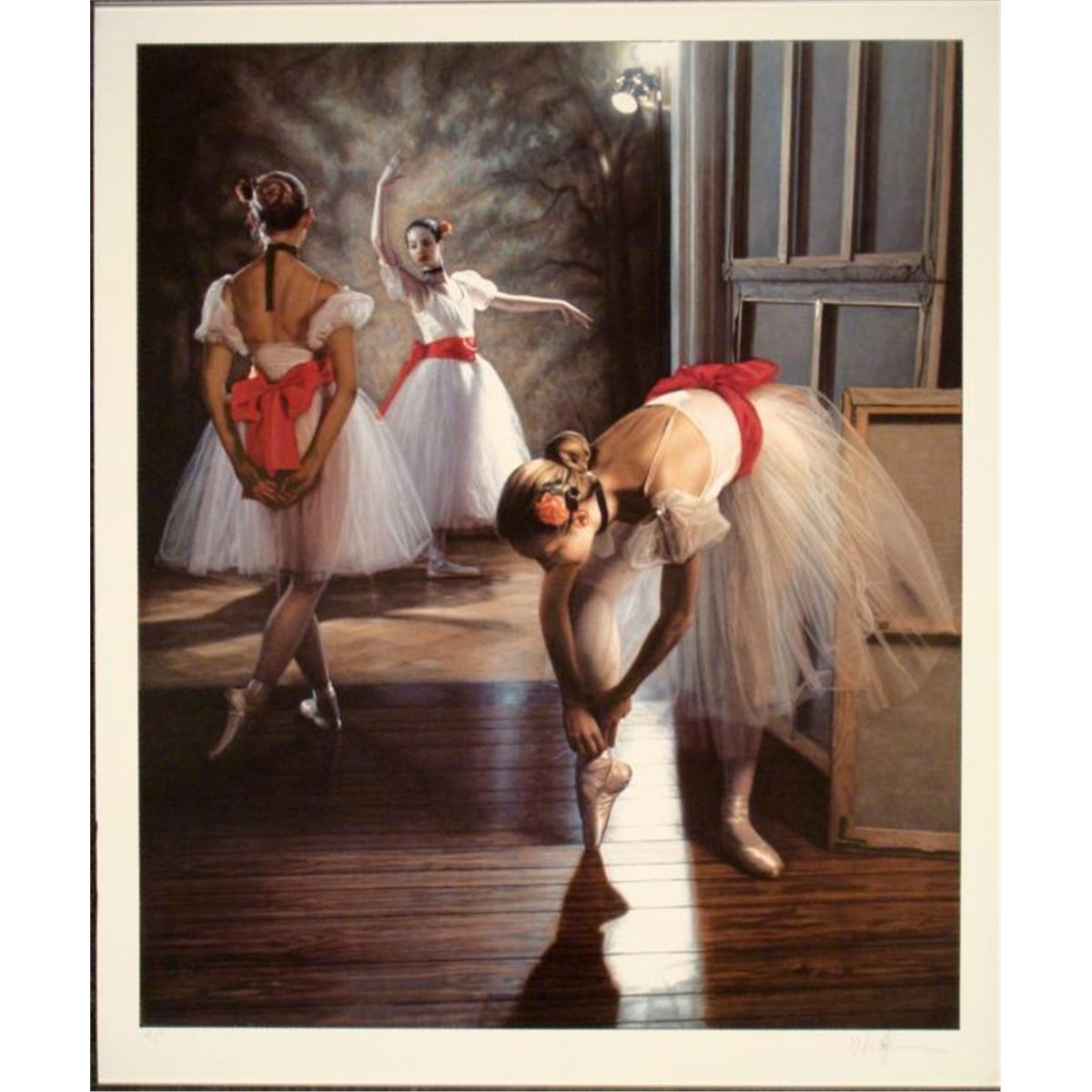 Grace, fortitude, and elogance are qualities a ballerinas typicallyl possess, and their dedication is portrayed in this wonderful print. * Artist: Doug Hoffman Title: Ballerina Medium: Print on Paper Signature: in pencil, lower right Edition: A.P., Artist Proof Size: 27 3/4" x 33" Condition: Very Good, creases to the corners Biography * Since an early age I have been creating artwork on various surfaces using many different mediums and utensils. I've enjoyed working in foreign environments since my very first mural/installation that I presented to my mother and her best friend when I was only 4 years old. Over the years that followed I began to draw much inspiration from different life experiences and personal interests that have shaped my art into the craft it is today. From painting graffiti on trains to designing album covers I've enjoyed developing a style and body of work that I am proud to present to the public. * * From the website: http://fineartamerica.com/profiles/doug-hoffman.html *