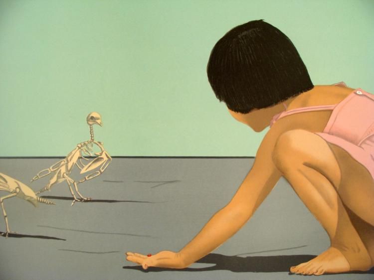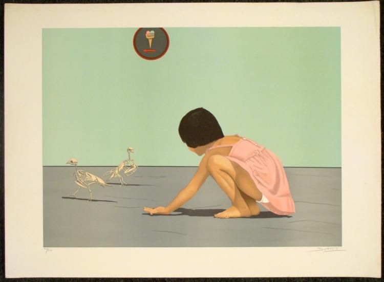 Come here little guy, I'm not going to hurt you... * * Artist: Detrait * Medium: Print on paper * Image Size: 17 1/2" x 23 3/4" * Size of Paper: 22" x 30" * Edition: Out of 250 * Signature: lower right, in pencilCondition: Very good; crease to the upper right corner and some stains to the paper. *