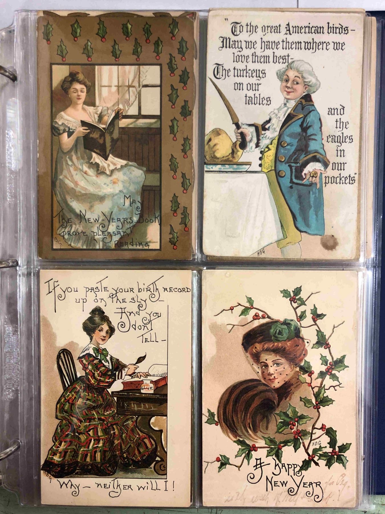 Album of signed Artist HBG. Over 75 cards. Showing ladies, children, Thanksgiving, Christmas, New Year, St. Patricks, Valentines, Patriotic & more.Pictures shown are just a portion of the lot.