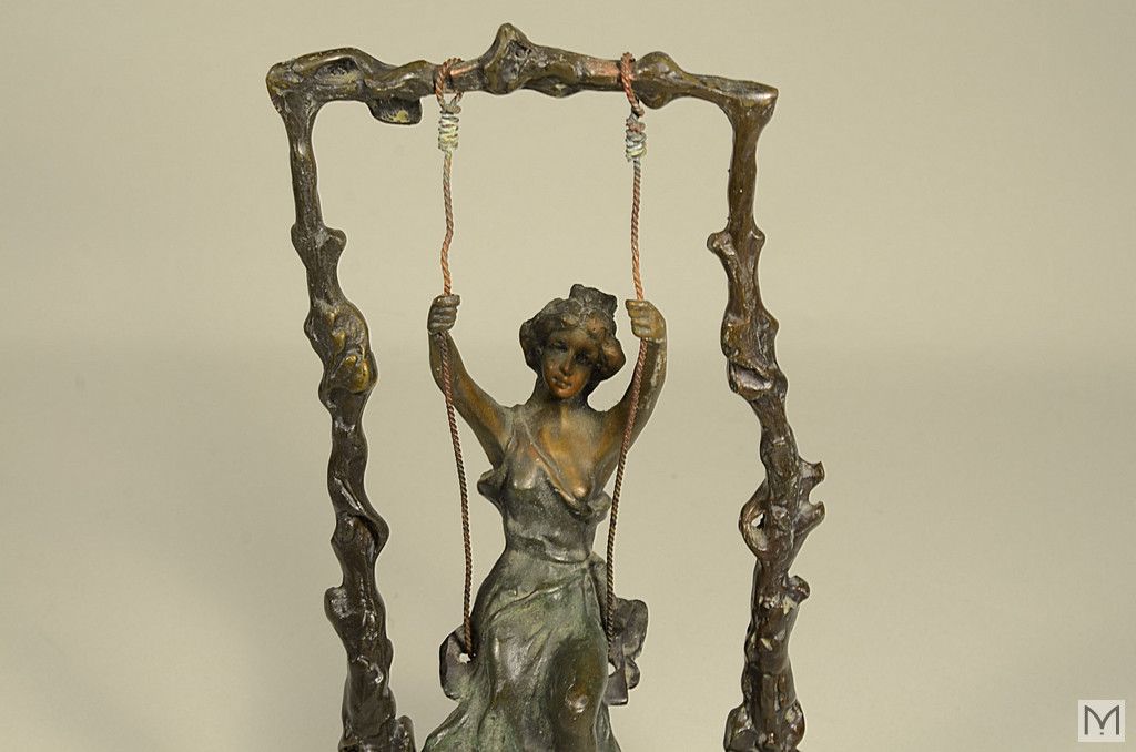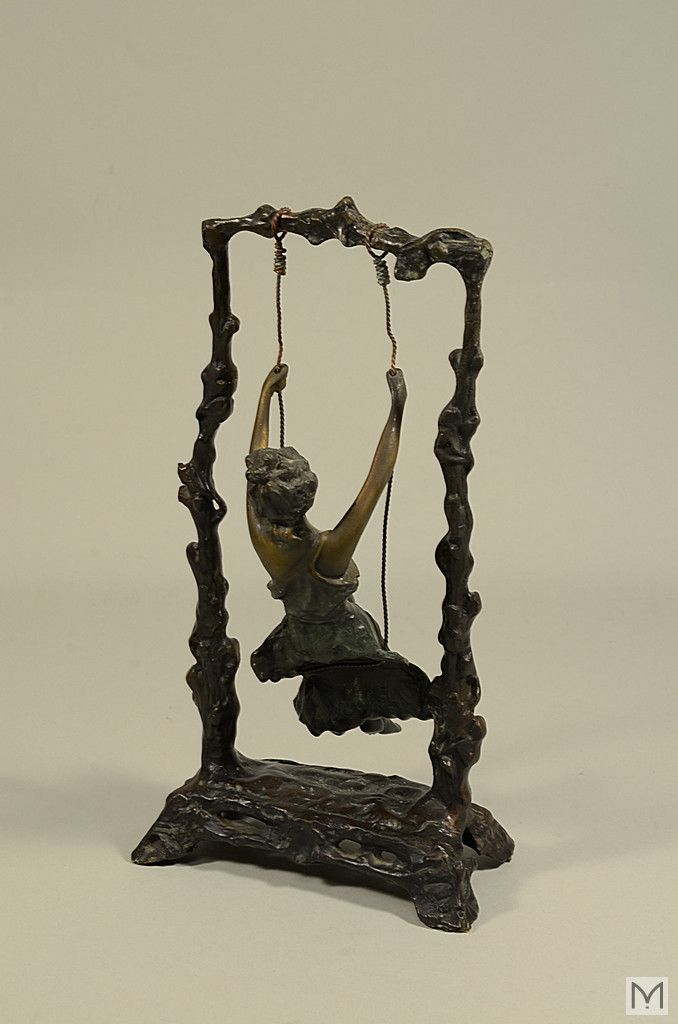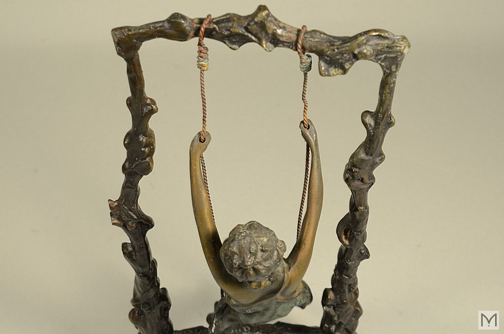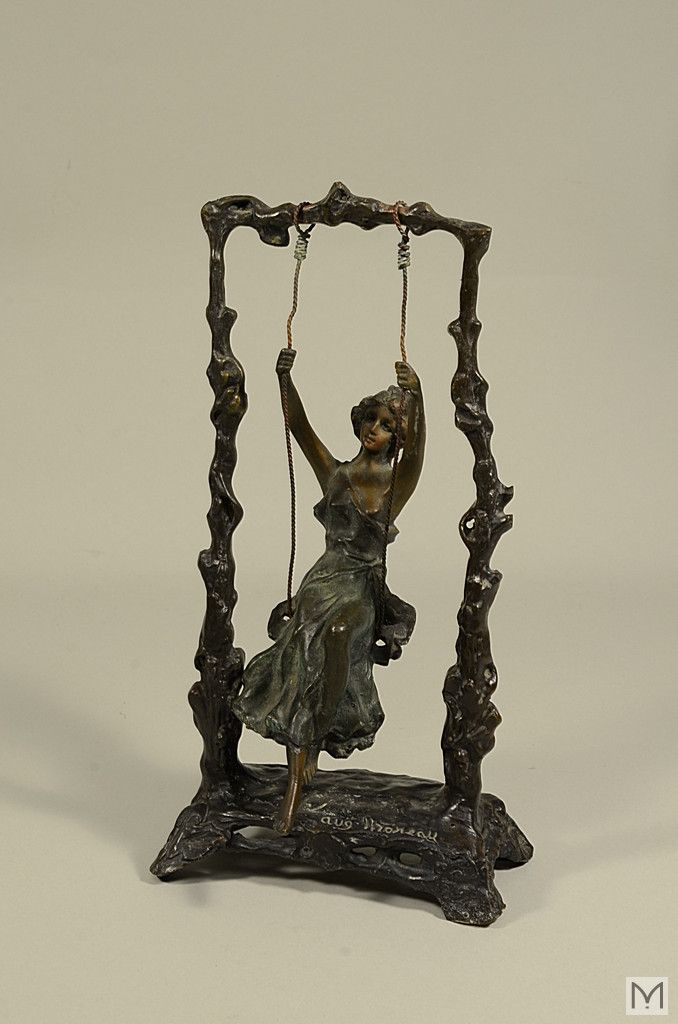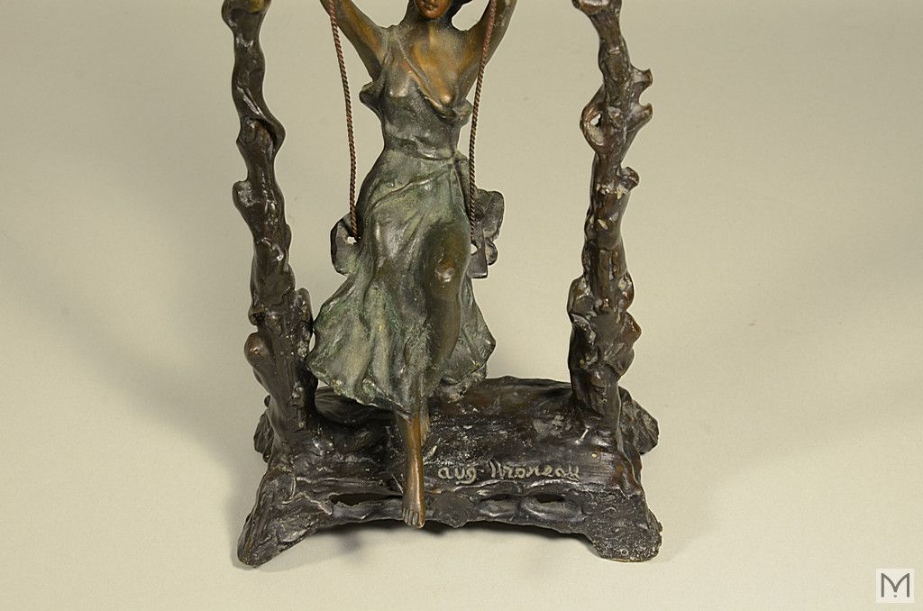 Signed Auguste Moreau French Bronze - Girl with Tree Swing