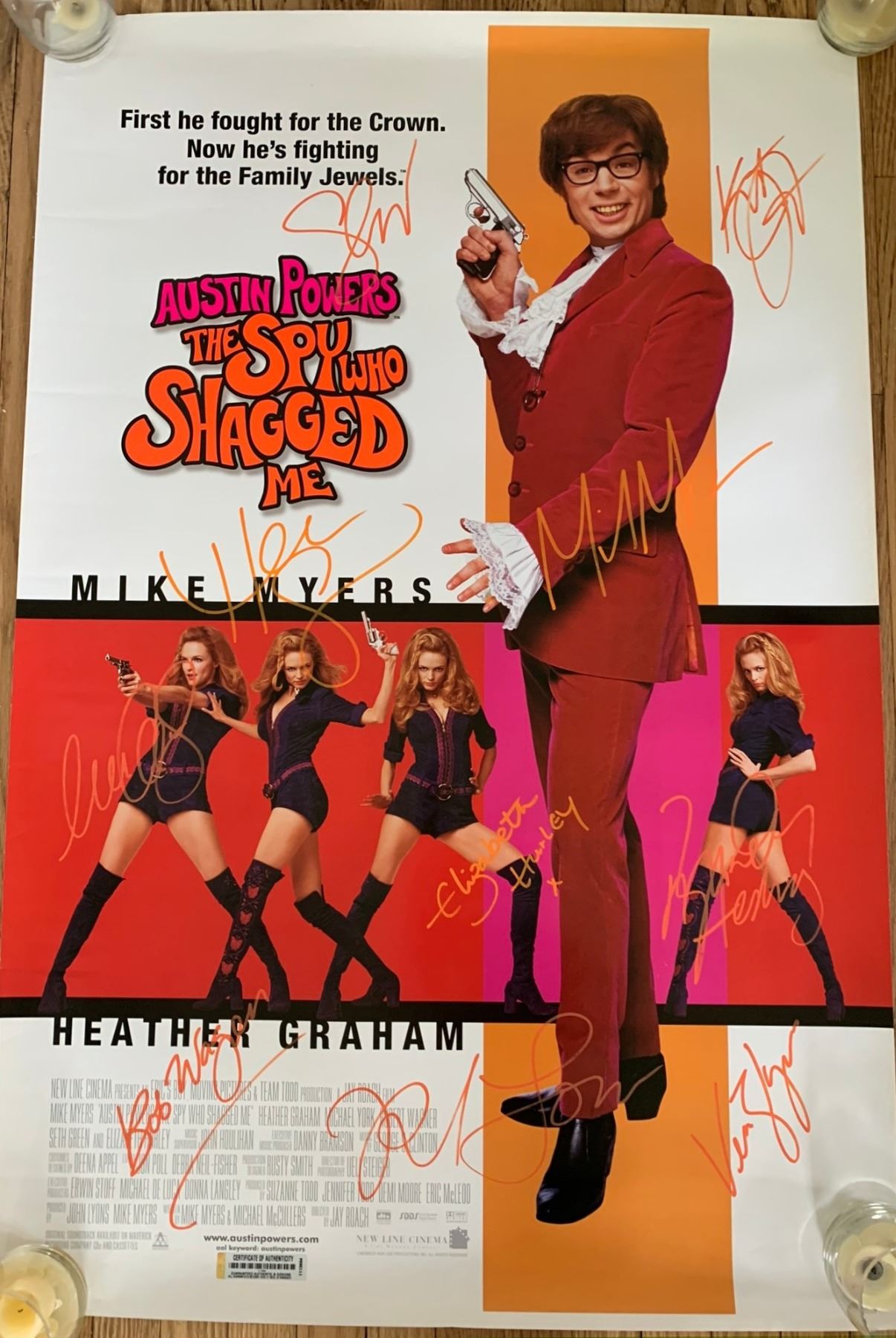 Signed by Mike Myers, Heather Graham, Elizabeth Hurley, Seth Green, Robert Wagner, Rob Lowe, Verne Troyer, Kristen Johnston, Mindy Sterling and Gia Carides